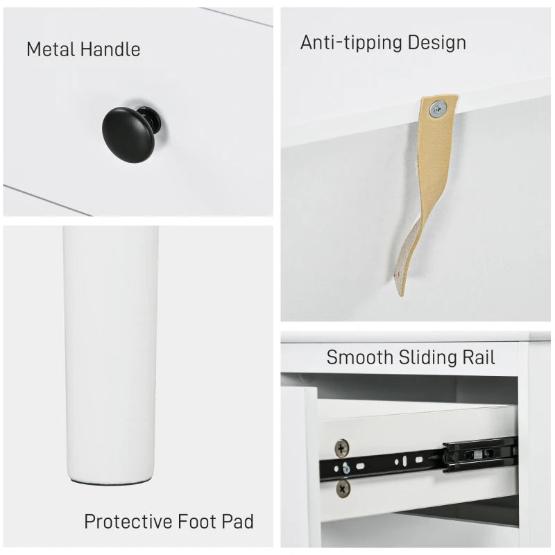 Simple style for all homes, offering plenty of nighttime space: say hello to these two HOMCOM bedside tables. In a clean white boxy design, they are super easy to welcome into your home interior style; the black handles add a touch of striking contrast. Three drawers offer handy holding room, with a flat tabletop to make space for essentials like an alarm clock. Made from particle board, each nightstand is reliable, with anti-tipping straps to securely fix to the wall.