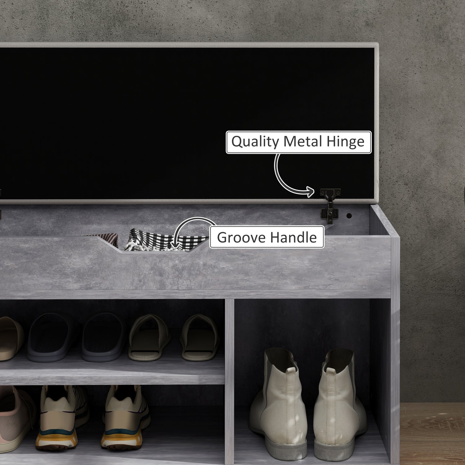 HOMCOM Shoes Cabinet Bench Hidden Storage Padded Seat Organiser Footwear Rack Hallway Grey Wood Grain