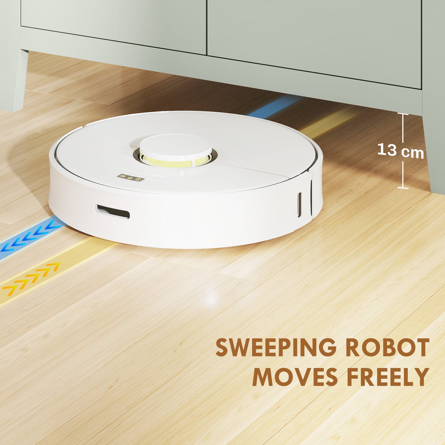 - 13 cm height at the bottom can be easily cleaned by a sweeping robot