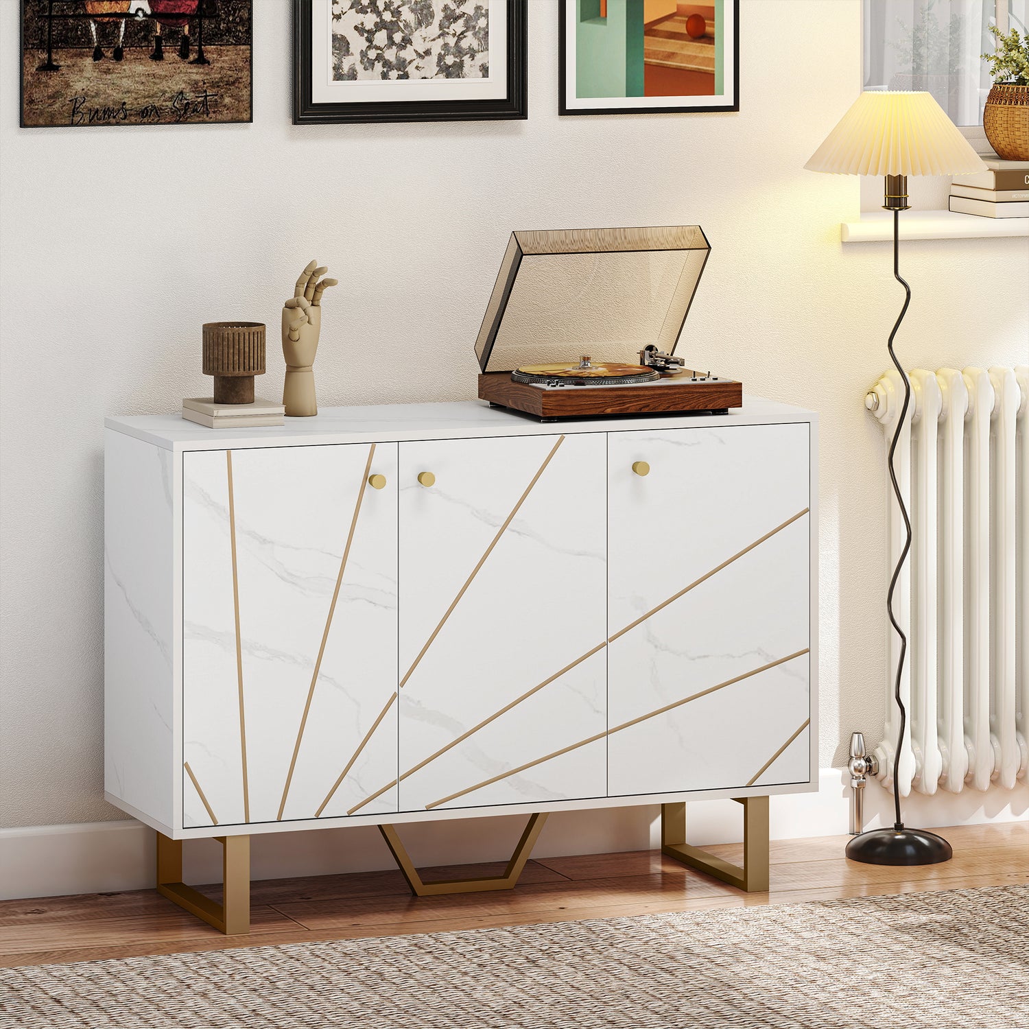 - Modern luxury design: Elevate your living space with this sideboard, featuring a sleek marble texture and sophisticated gold tone legs and handle for a touch of elegance.