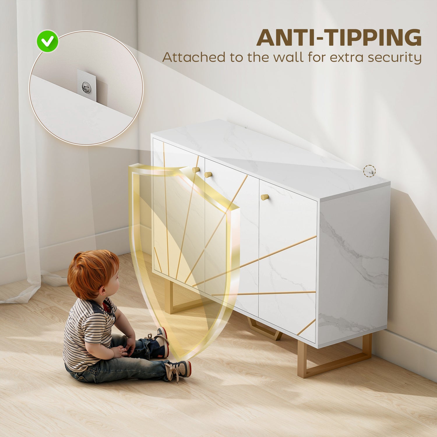 HOMCOM Sideboard Storage Cabinet, Modern Cupboard with Adjustable Shelves & Metal Legs for Living Room, Kitchen, Dining, Entryway, White Marble Tone