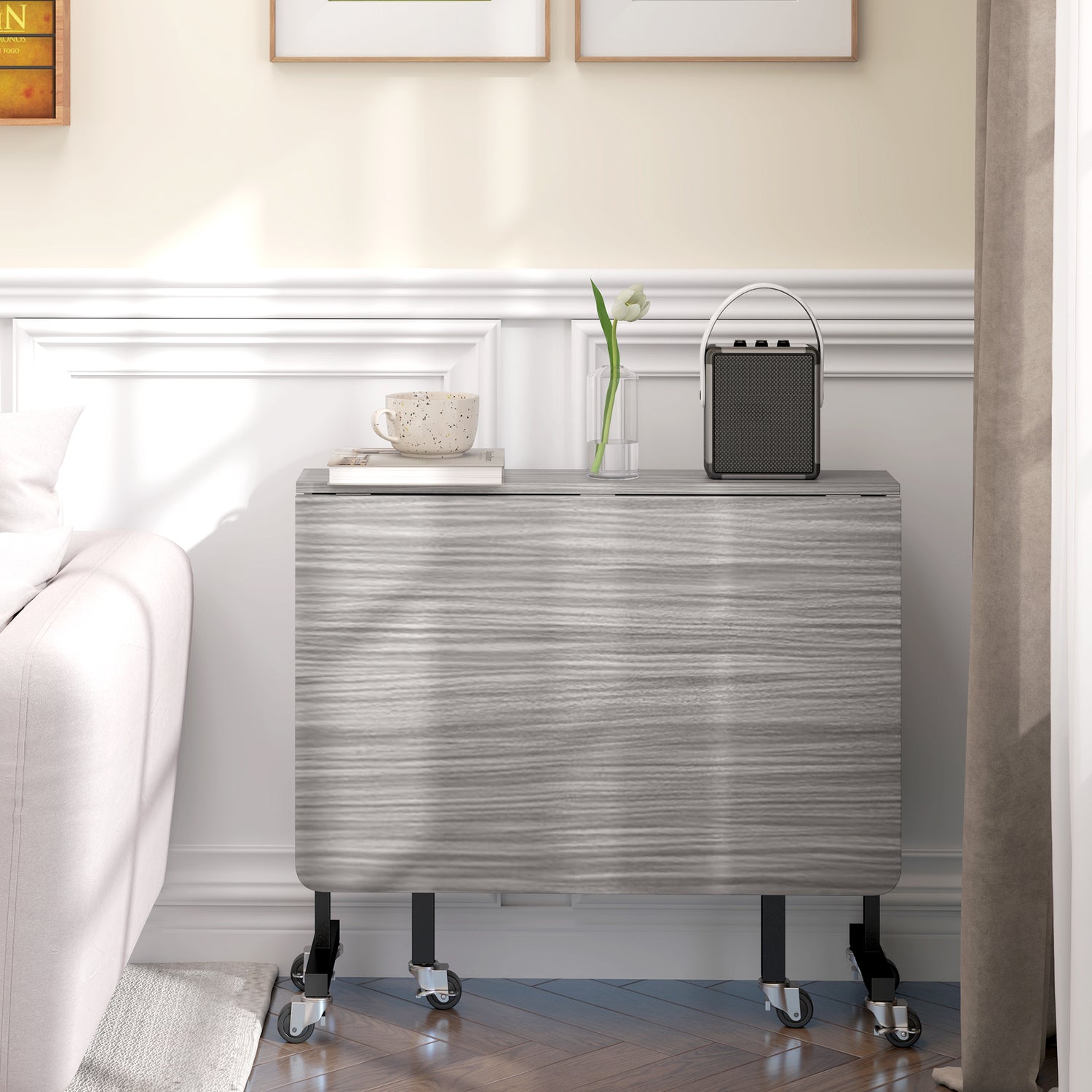 - Six wheels: Easy to move extendable dining table around, with brakes so it stands stationary.