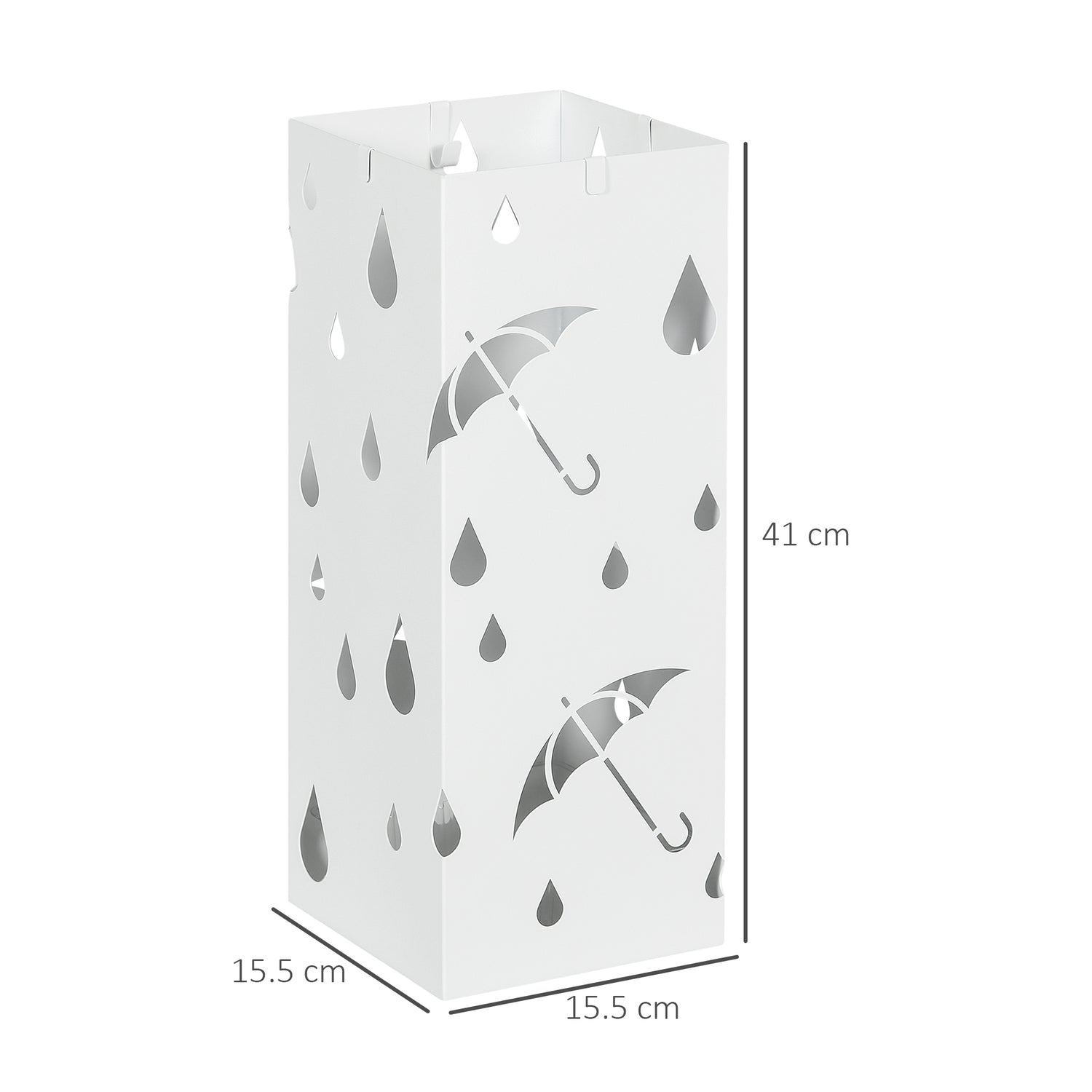 Rainy days mean umbrellas. And umbrellas can result in wet floors. Merging style and function, this HOMCOM umbrella holder for hallway gives umbrellas their own storage place, whilst bringing in a touch of style. Made from galvanised steel, this umbrella stand is strong and resistant to rusting. The 15.5 x 15.5cm size holds two large umbrellas, with four hooks included for smaller brollies. Comes with a removable bottom tray to easily remove any liquid.