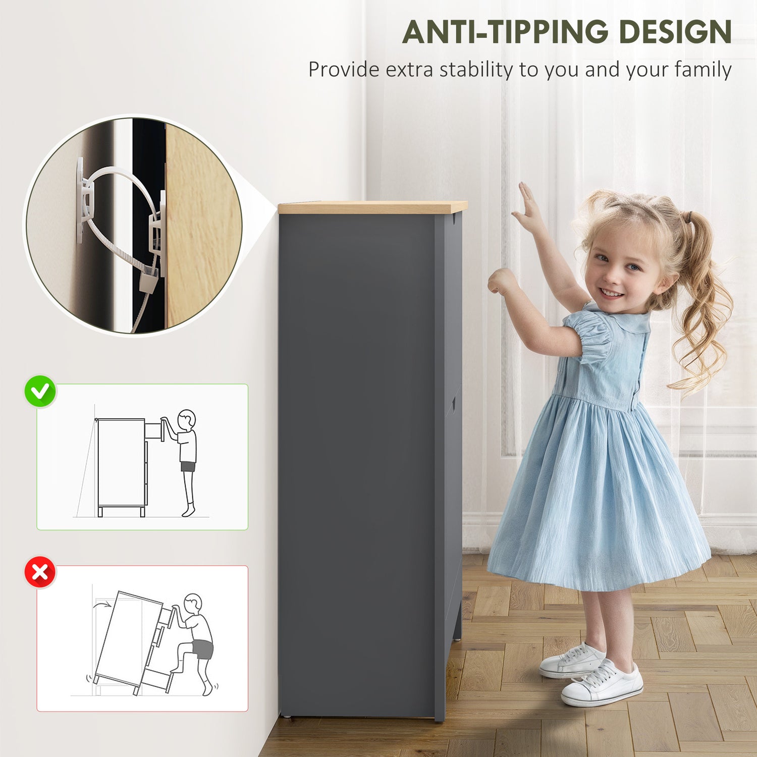 HOMCOM Slim Shoe Cabinet, Narrow Shoe Cupboard with 2 Flip Drawers, Adjustable Shelves for 12 Pairs of Shoes, Charcoal Grey