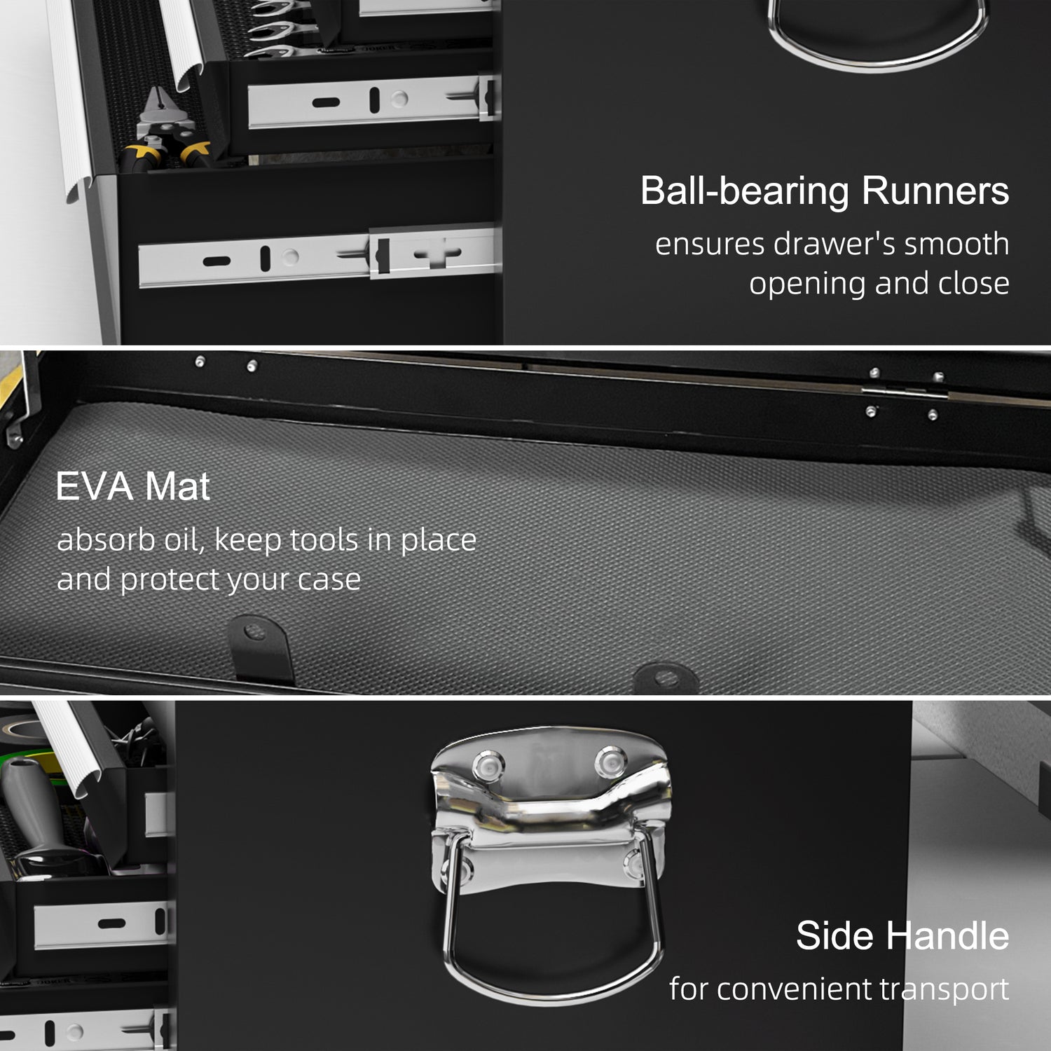 - Six drawers and a top case to store and organise tools efficiently. Ball bearings for smooth movement