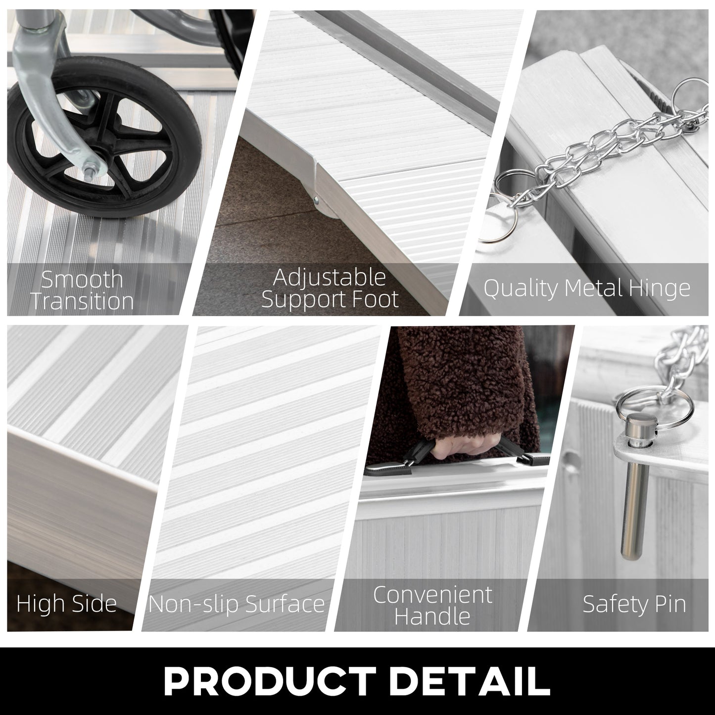 HOMCOM Textured Aluminum Folding Wheelchair Ramp, 183 x 72 cm Portable Threshold Ramp, for Scooter Steps Home Stairs Doorways
