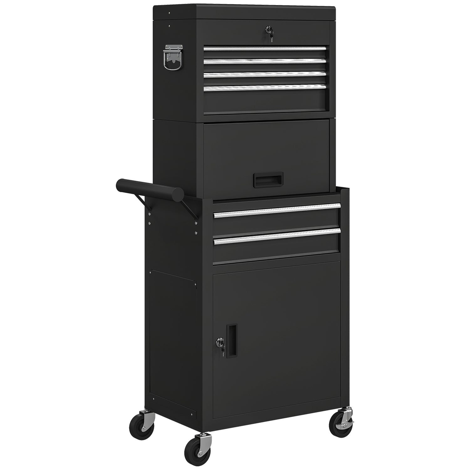 This HOMCOM tool chest provides vast and organised storage. It comes in three parts: a top toolbox, middle section and bottom cupboard to stack together or separate as needed. Made from powder coated steel for a strong, reliable everyday structure, it features six drawers, two cupboards, a top compartment and a side pegboard for plenty of holding room. The lockable upper and lower keeps all contents secure when you're not around.