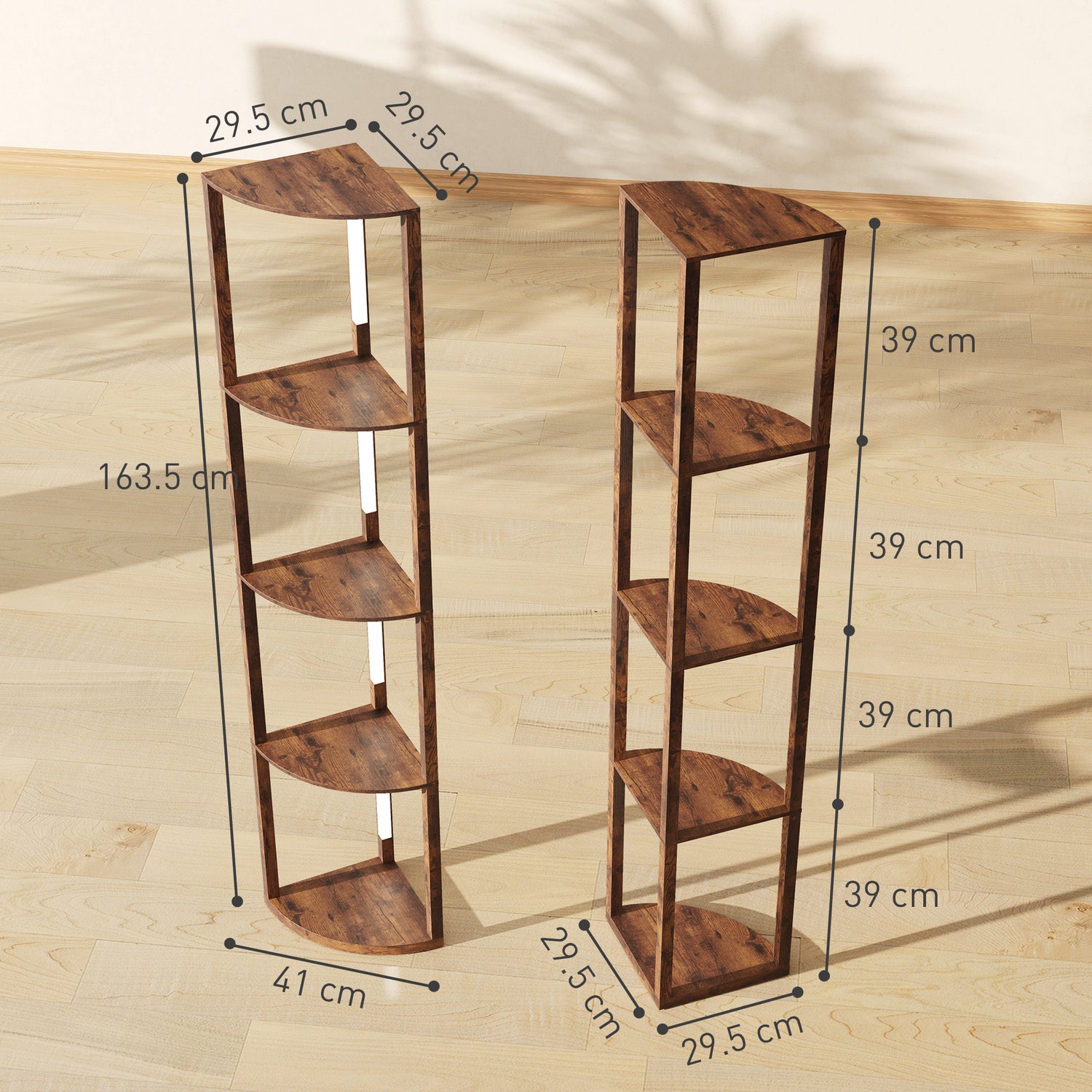 - 2-in-1 design: This corner floor lamp seamlessly integrates lighting and storage, featuring a sleek five-tier fan-shaped structure that maximizes space efficiency and style