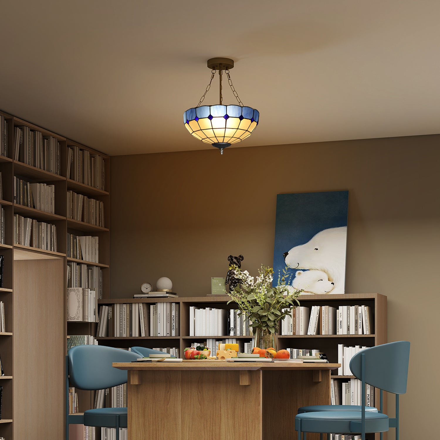 - Vintage Tiffany design: Tiffany-style ceiling light with vibrant stained glass, casting a warm, nostalgic glow that adds vintage elegance and distinctive character to any room