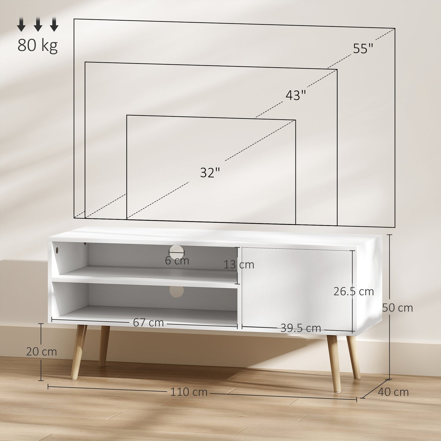 HOMCOM TV Stand up to 55 Inches, TV Unit with Open Shelves and Cable Holes - White