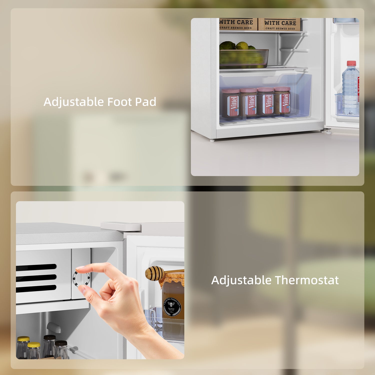 Looking for a free standing fridge for your flat, RV, shared room, or home office? The HOMCOM under counter fridge with ice box is great for keeping food, drinks and snacks fresh and organised. Its compact size makes it suit for small spaces. With a stylish retro design and a classic handle, it combines practicality and style. Enjoy the convenience of an adjustable thermostat and an interior light - this white fridge is great for any room.