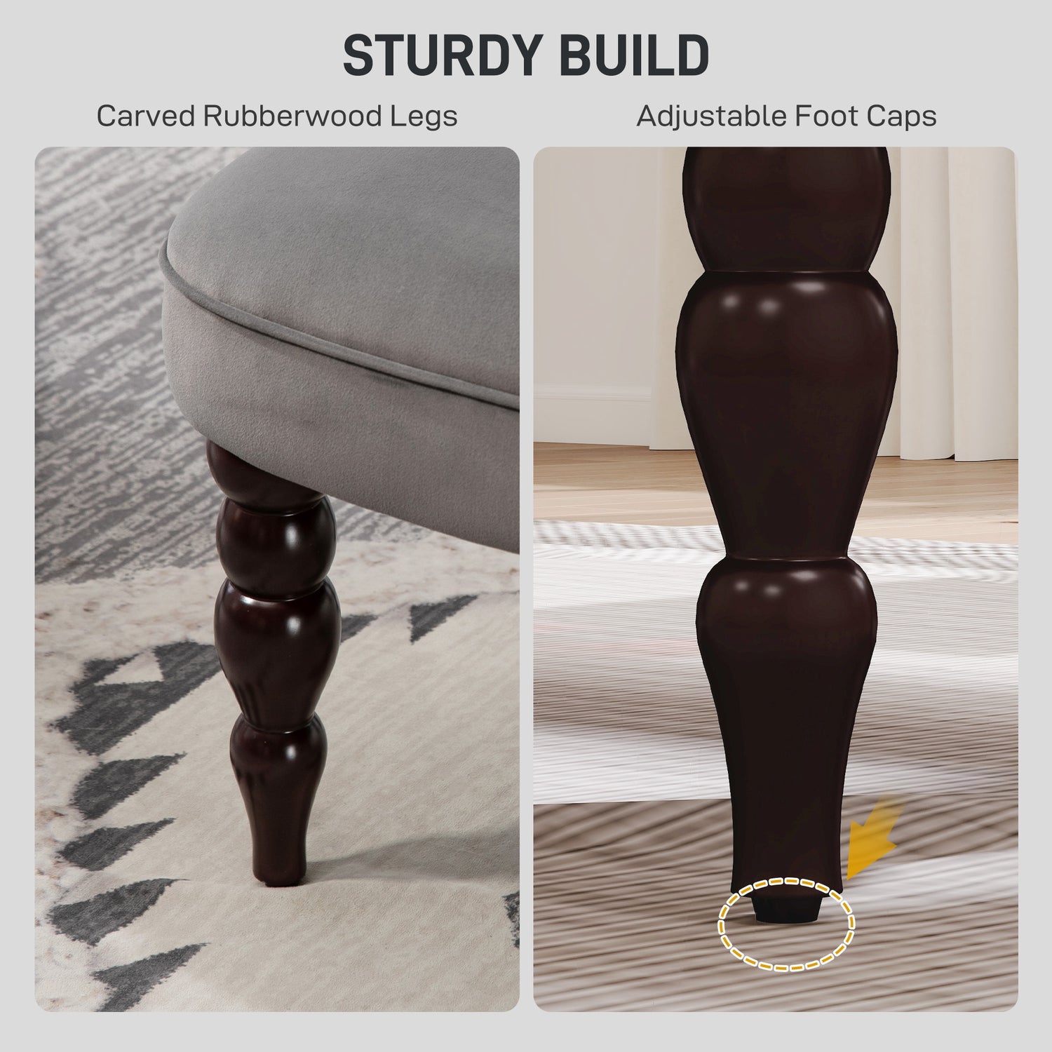 - Rubber wood legs for strong support, with adjustable anti-slip feet