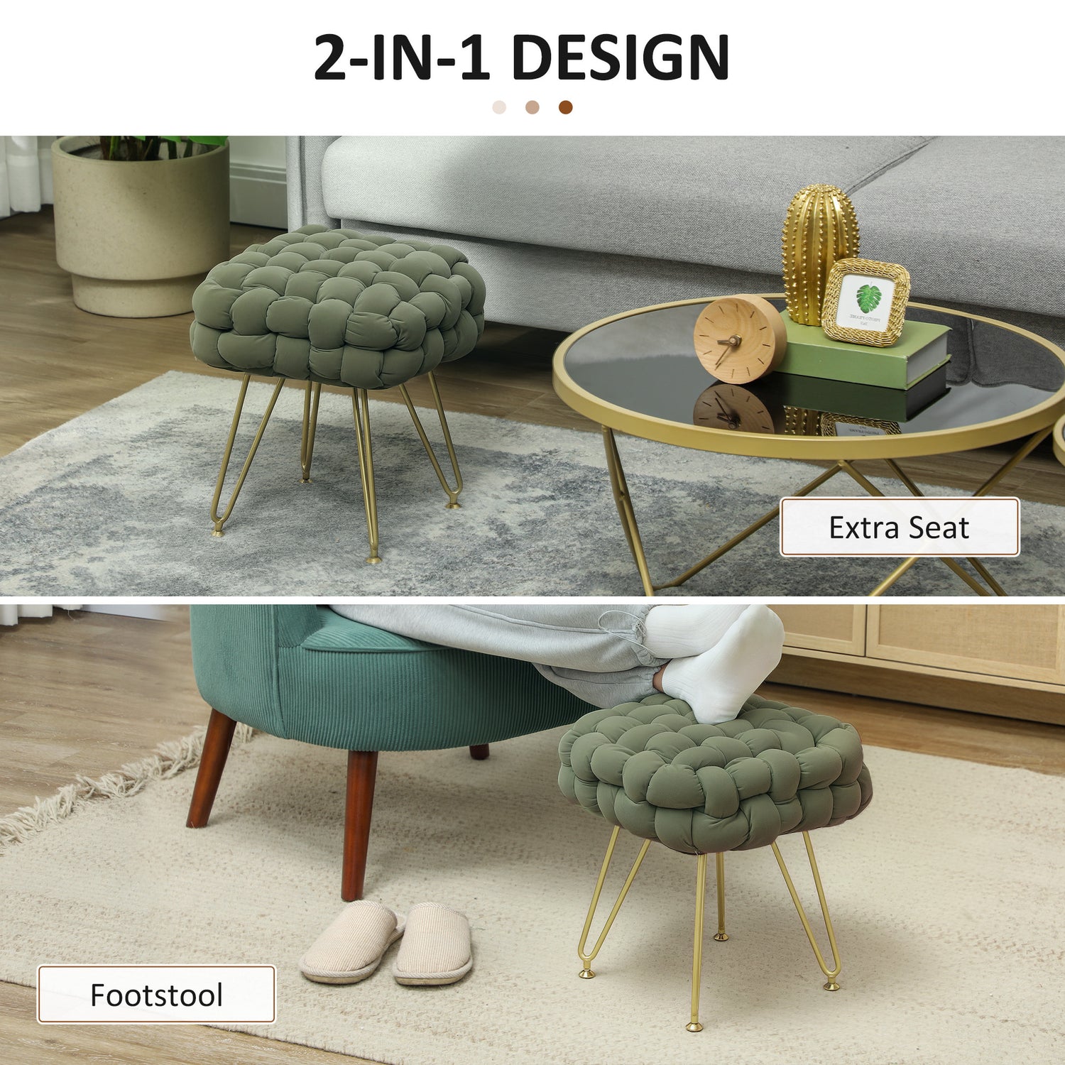 HOMCOM Velvet-Feel Bold Woven Footstool - Green