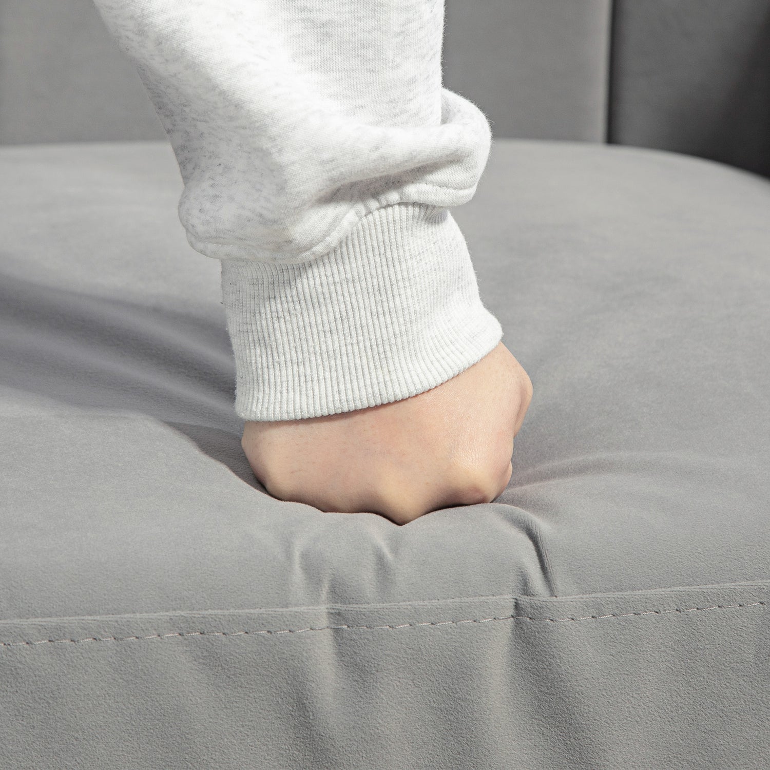 - Velvet-feel upholstery, in a beautiful grey colour