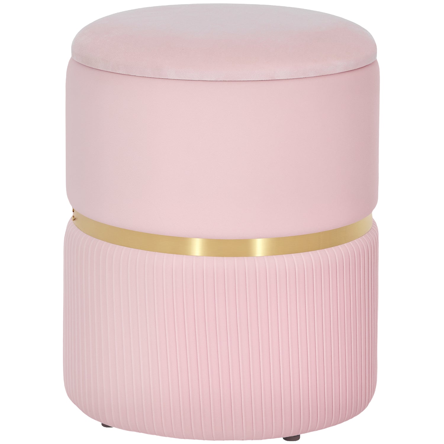 HOMCOM Velvet-Feel Storage Ottoman - Pink