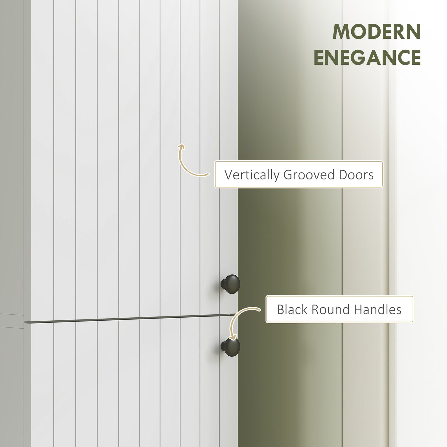 - Modern design: Sleek white finish, line-grooved doors and black round handles offer a fresh, modern look that suits bathroom, kitchen, living room and more. Painted surface make this slim cabinet water and moisture-resistant