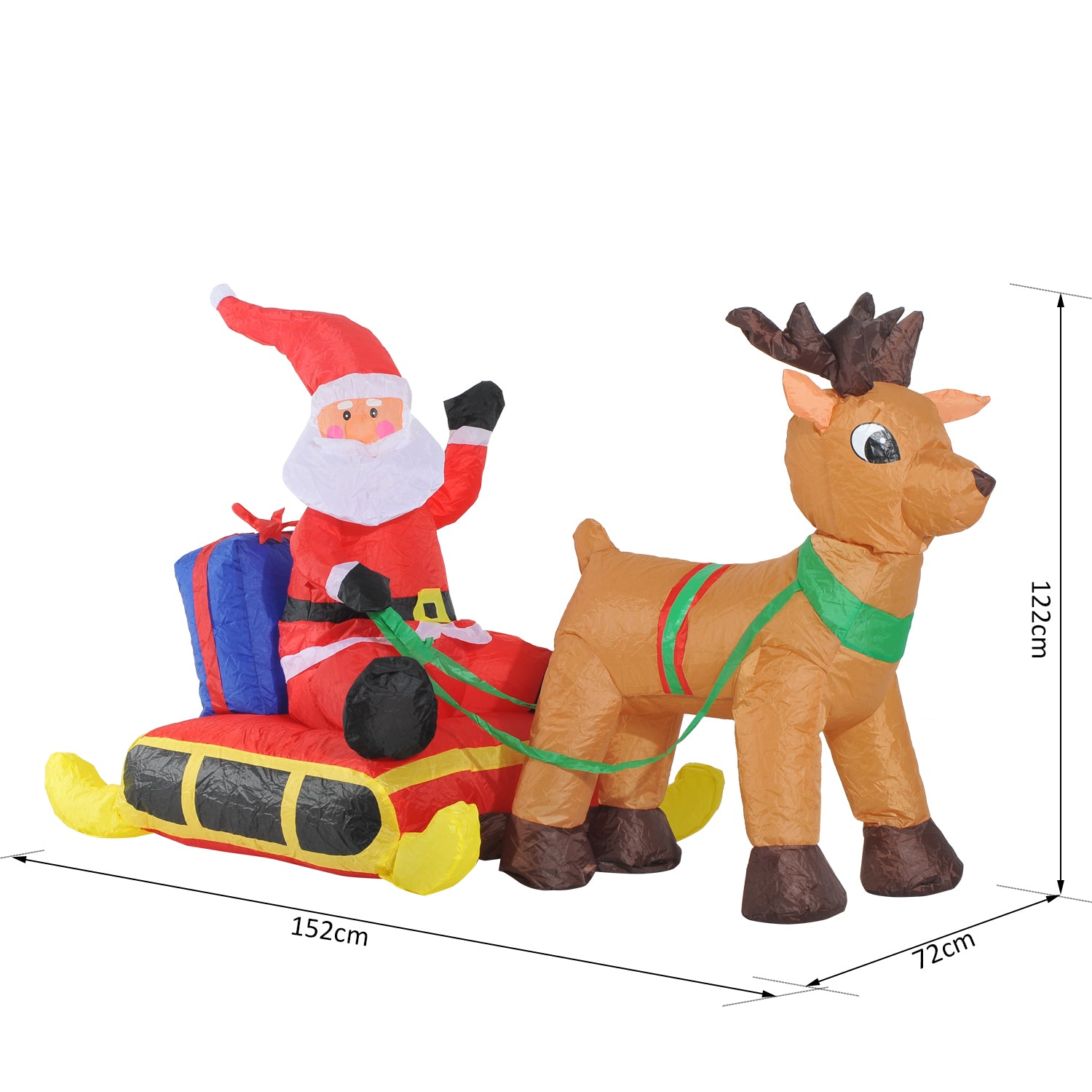 HOMCOM Inflatable Santa Claus W/ Sled and Reindeer, LED Light, Polyester Fabric, 122H cm-Multicolour
