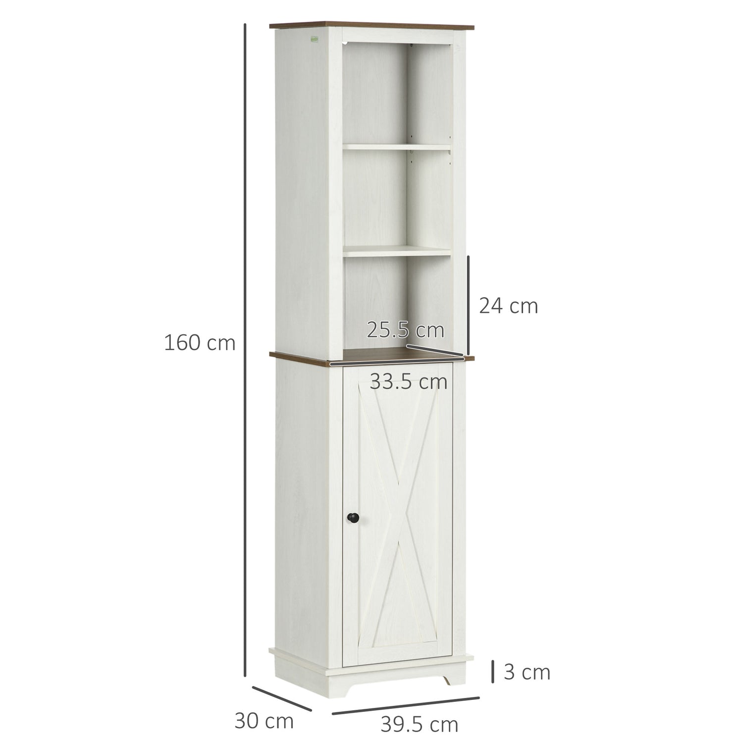 kleankin Bathroom Cabinet, Tall Storage Cabinet with Door and Adjustable Shelves, 39.5 x 30 x 160 cm, White