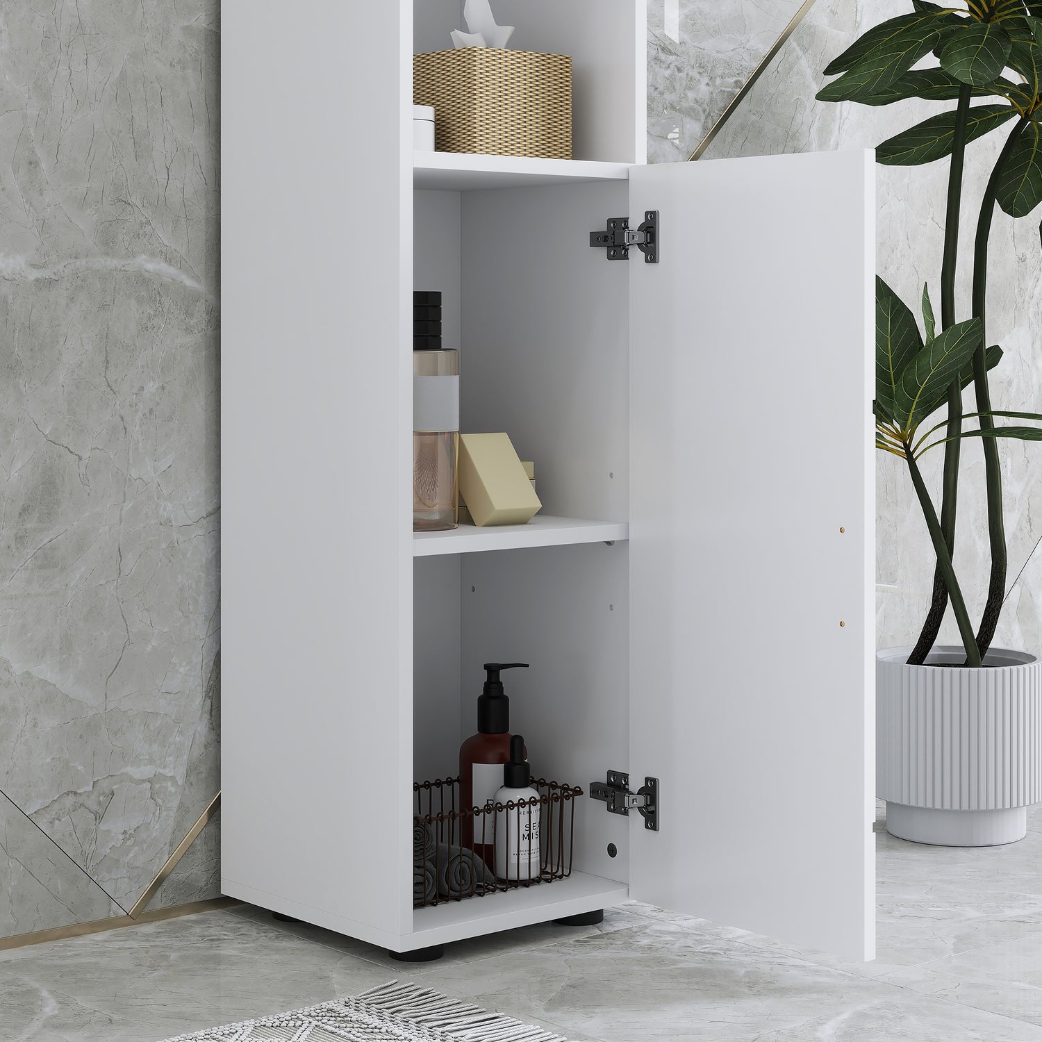 - Utilize unused spaces: Unlock the potential of unused bathroom corners with this slim storage unit. Designed to occupy minimal space, it cleverly utilizes areas that would otherwise remain vacant, maximizing storage capacity without compromising on floor space.