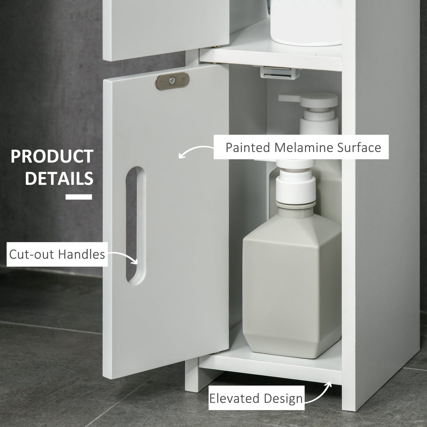 Maximise space and minimise clutter with this freestanding bathroom cabinet from kleankin. The slim, tallboy design makes this bathroom cabinet great for the tighter spots. Open shelves and enclosed cabinets offer plenty of room for you to store towels, toiletries and more. The anti-tipping straps to attach to the wall for safety. MDF and particle board structure is tough, with the surface treated for protection.