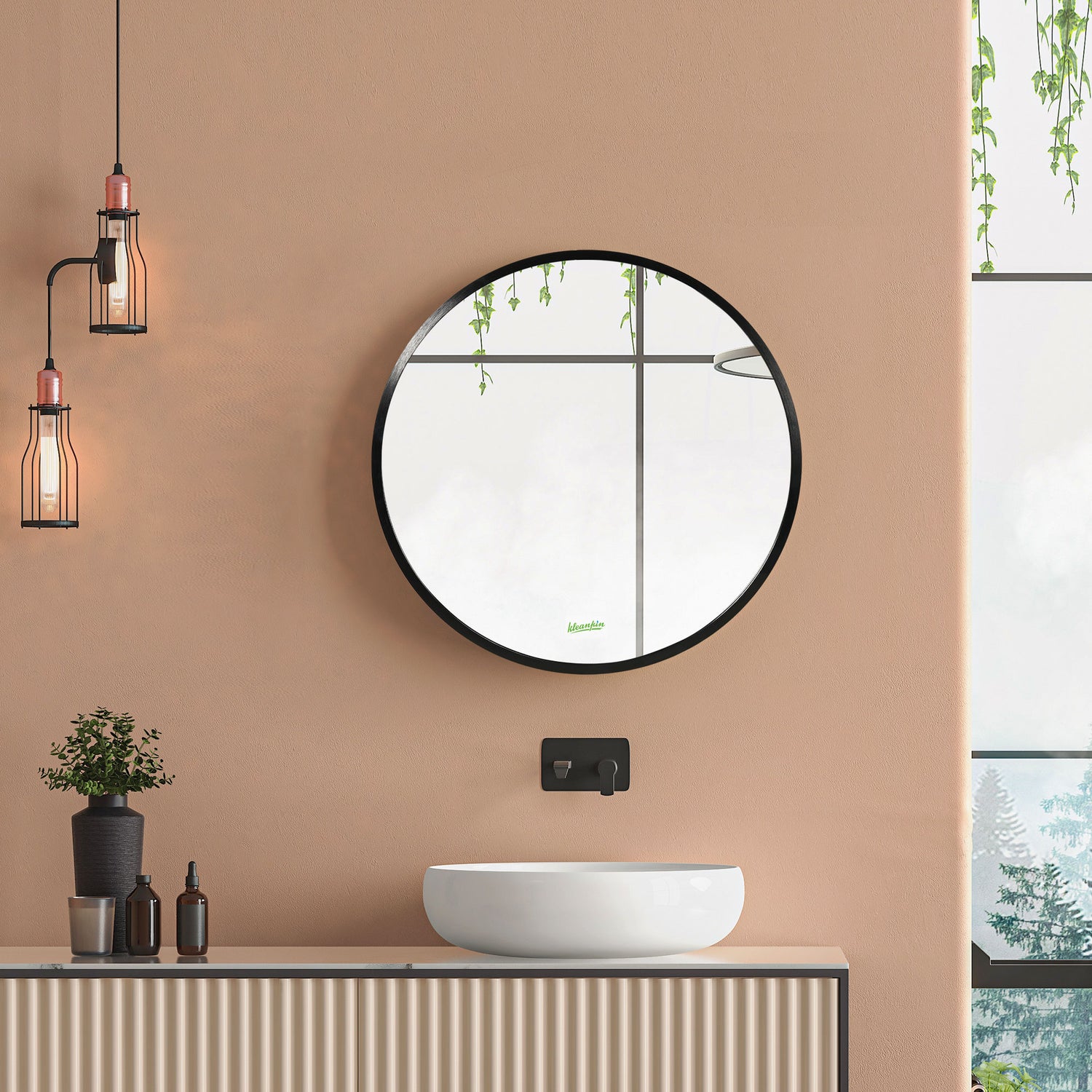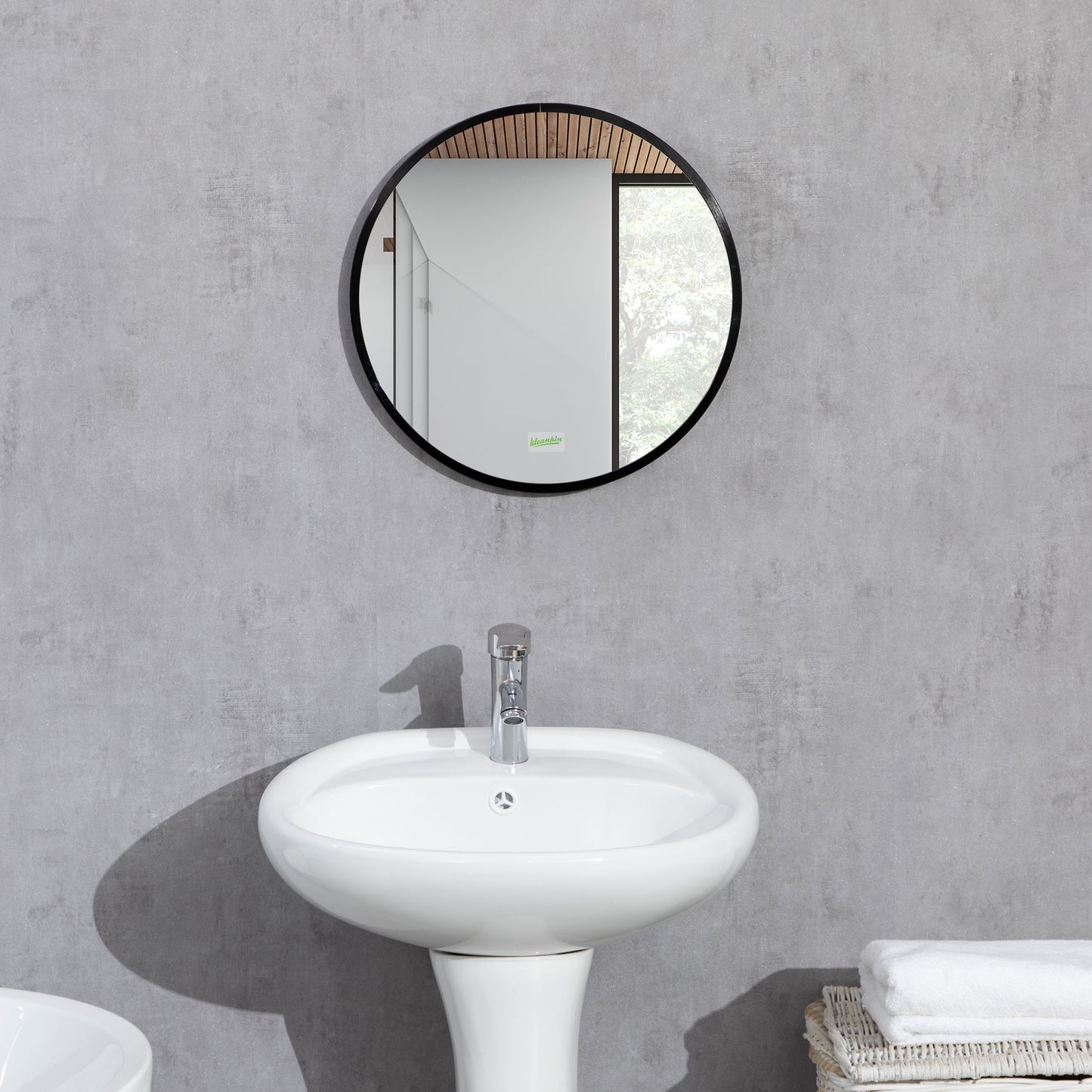 kleankin Round Bathroom Mirror, Modern Wall-mounted Makeup Mirror with Aluminium Frame for Washroom Living Room, Black, 40x40 cm