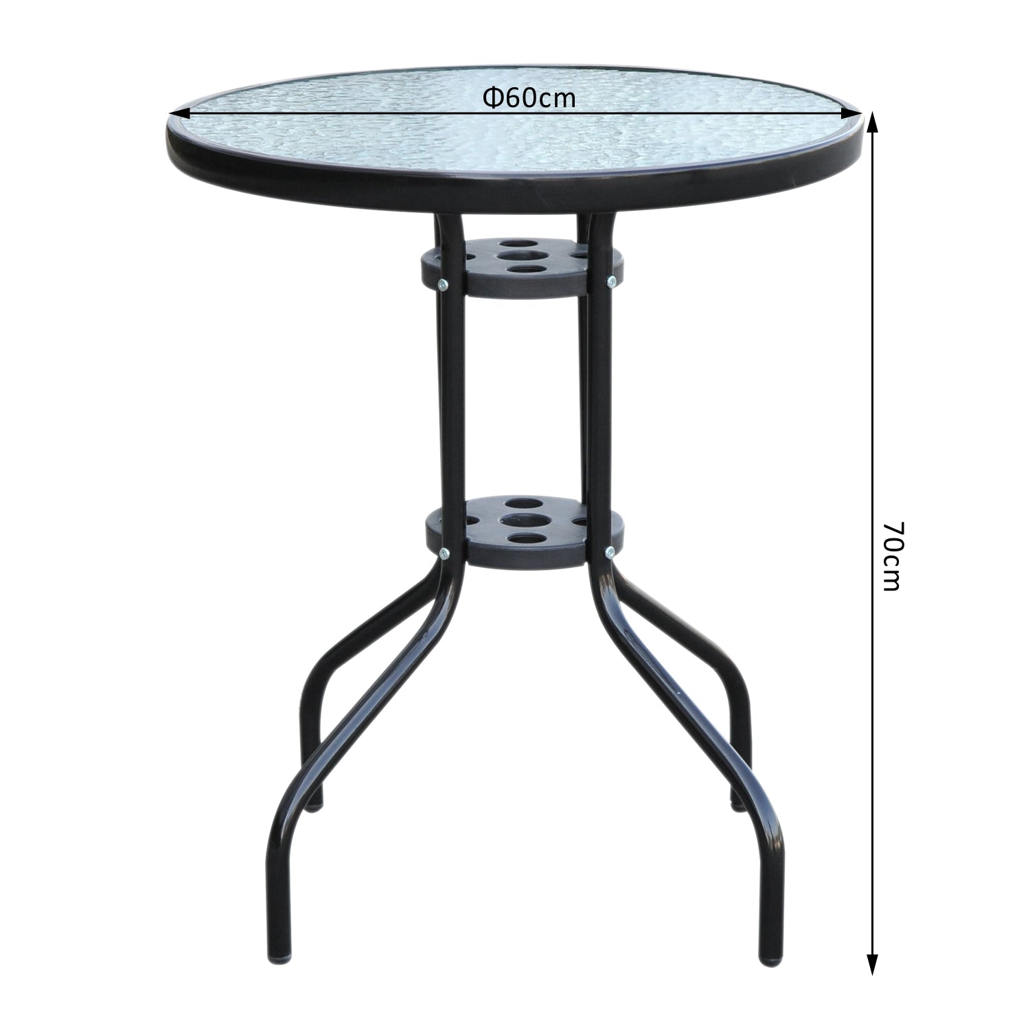 Outsunny Ø60×70H cm Round Metal Table, Garden Table Tempered Glass-Black