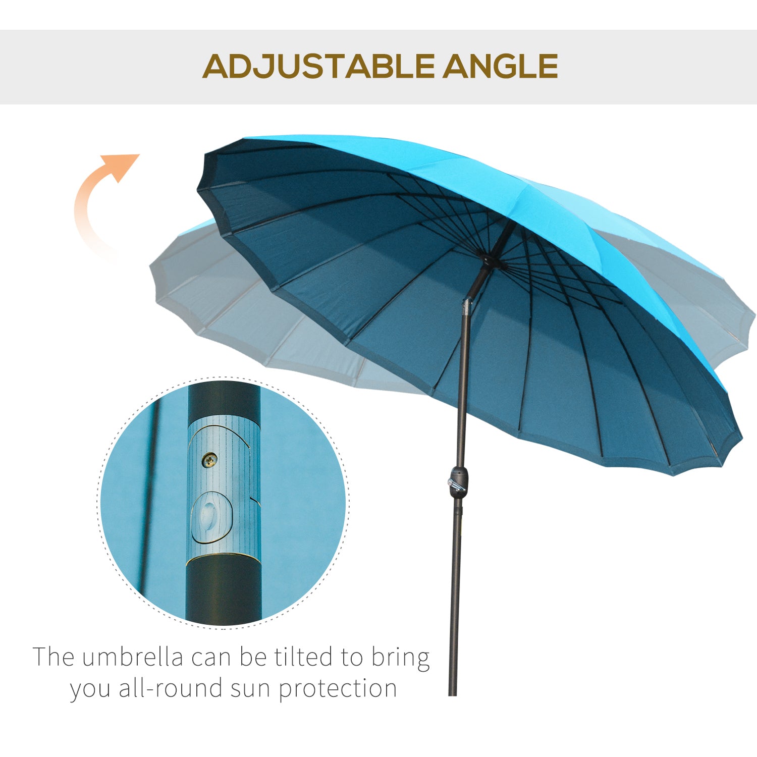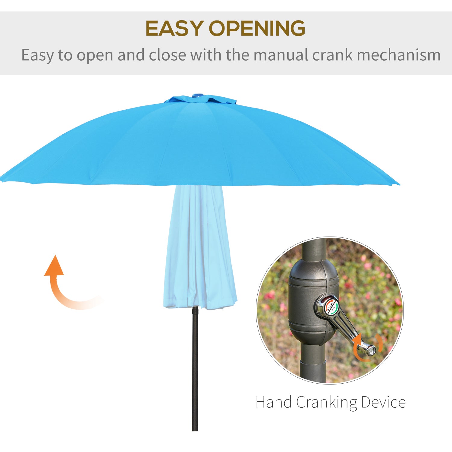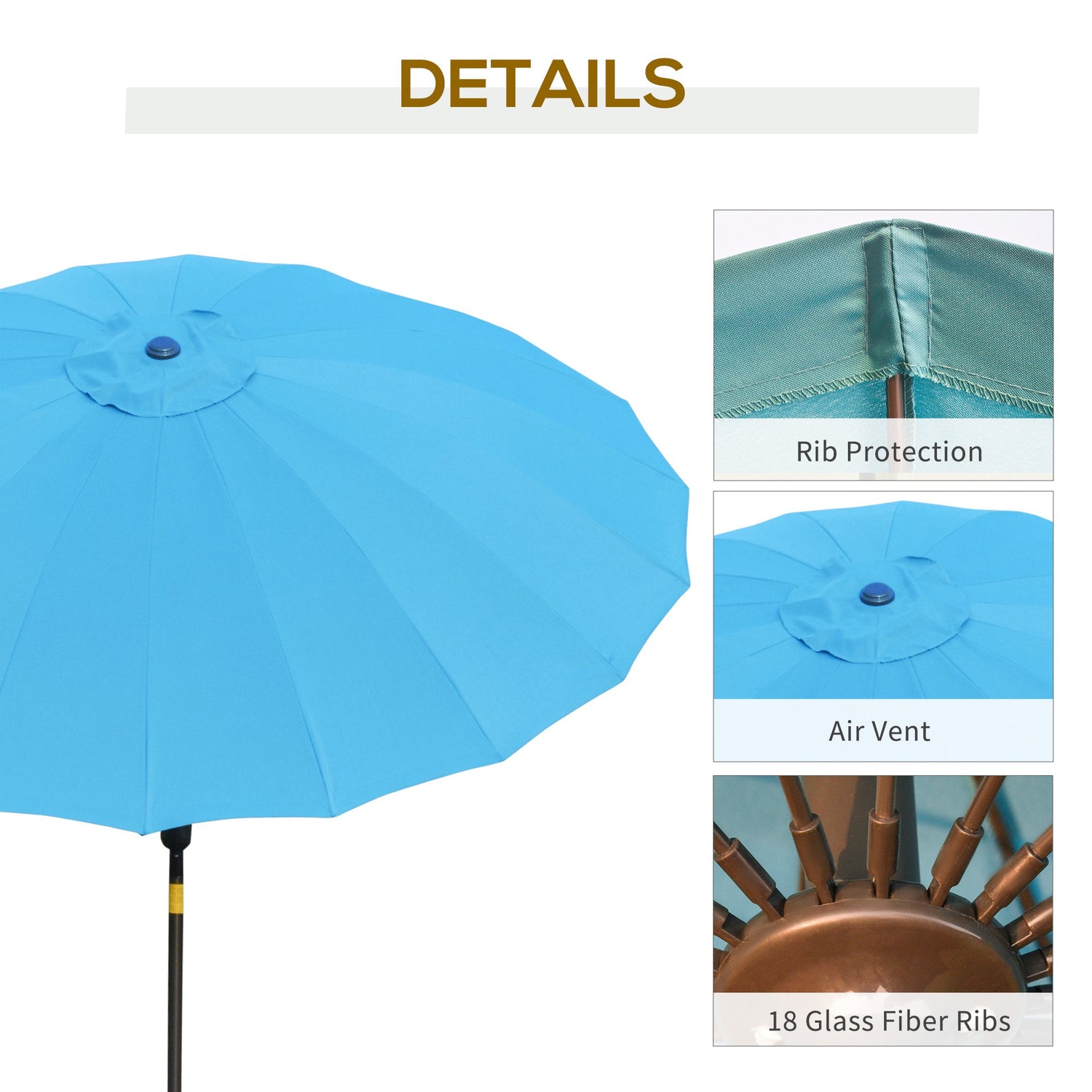 Outsunny Ф255cm Patio Parasol Umbrella Outdoor Market Table Parasol with Push Button Tilt Crank and 18 Sturdy Ribs for Garden Lawn Backyard Pool Blue Adjustable Angle Detachable Structure