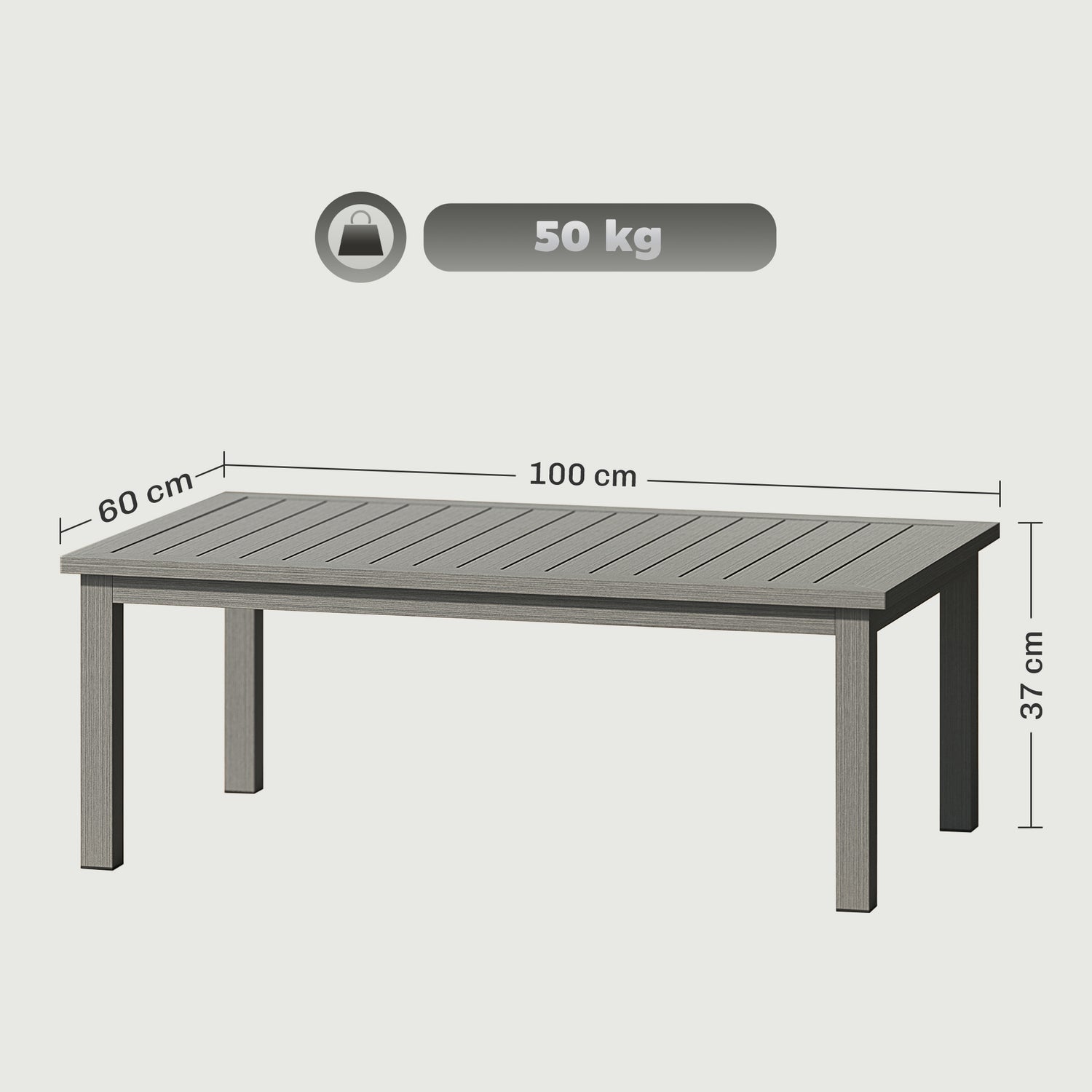 This Outsunny coffee table is a simple piece, suitable for all outdoor spaces. Made from aluminium, this is a tough piece suitable for use all year round; in a simple grey finish for versatility. Complete with a slatted tabletop to prevent annoying and damaging water build-up.