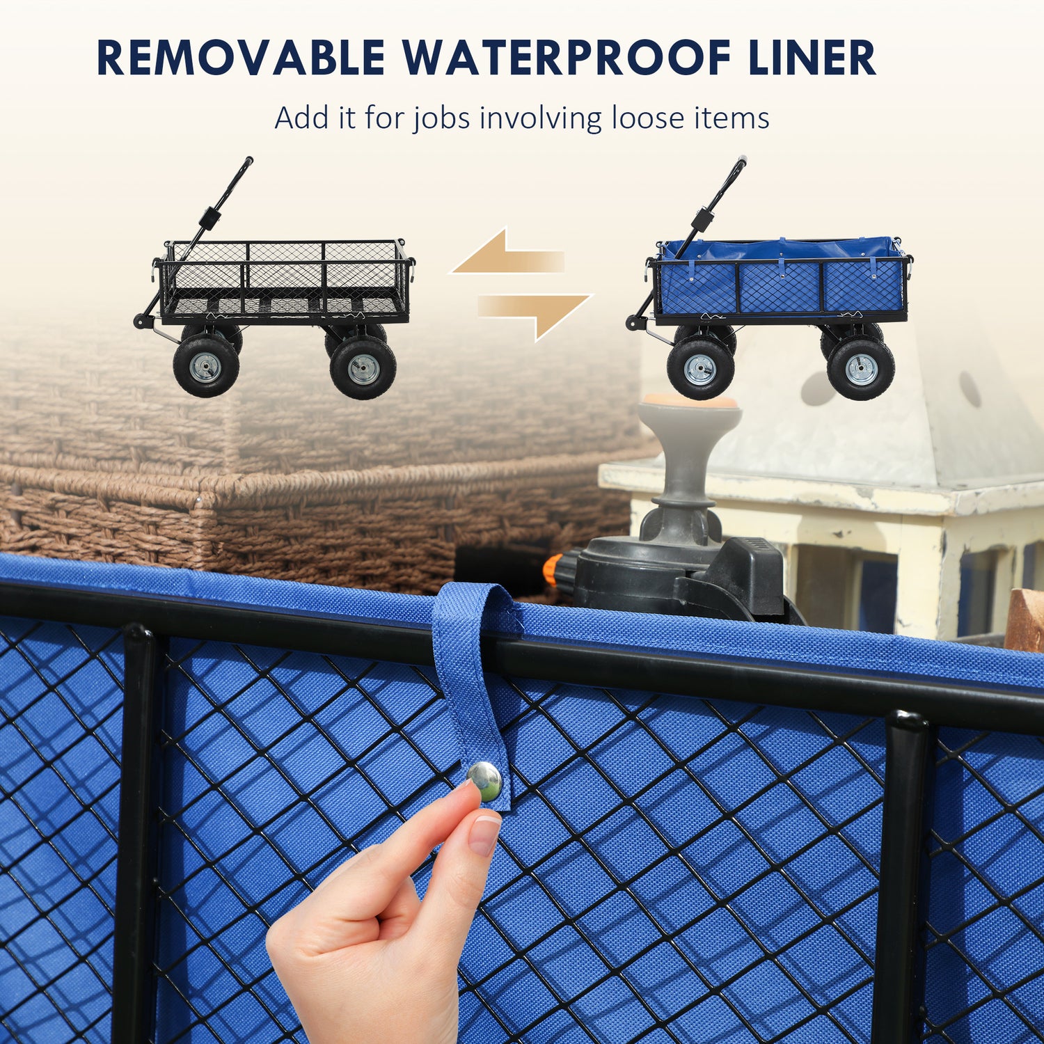- Removable sides and ends: Easy to put items in and take them out of this garden trolley cart - put sides back up so nothing falls out when moving.