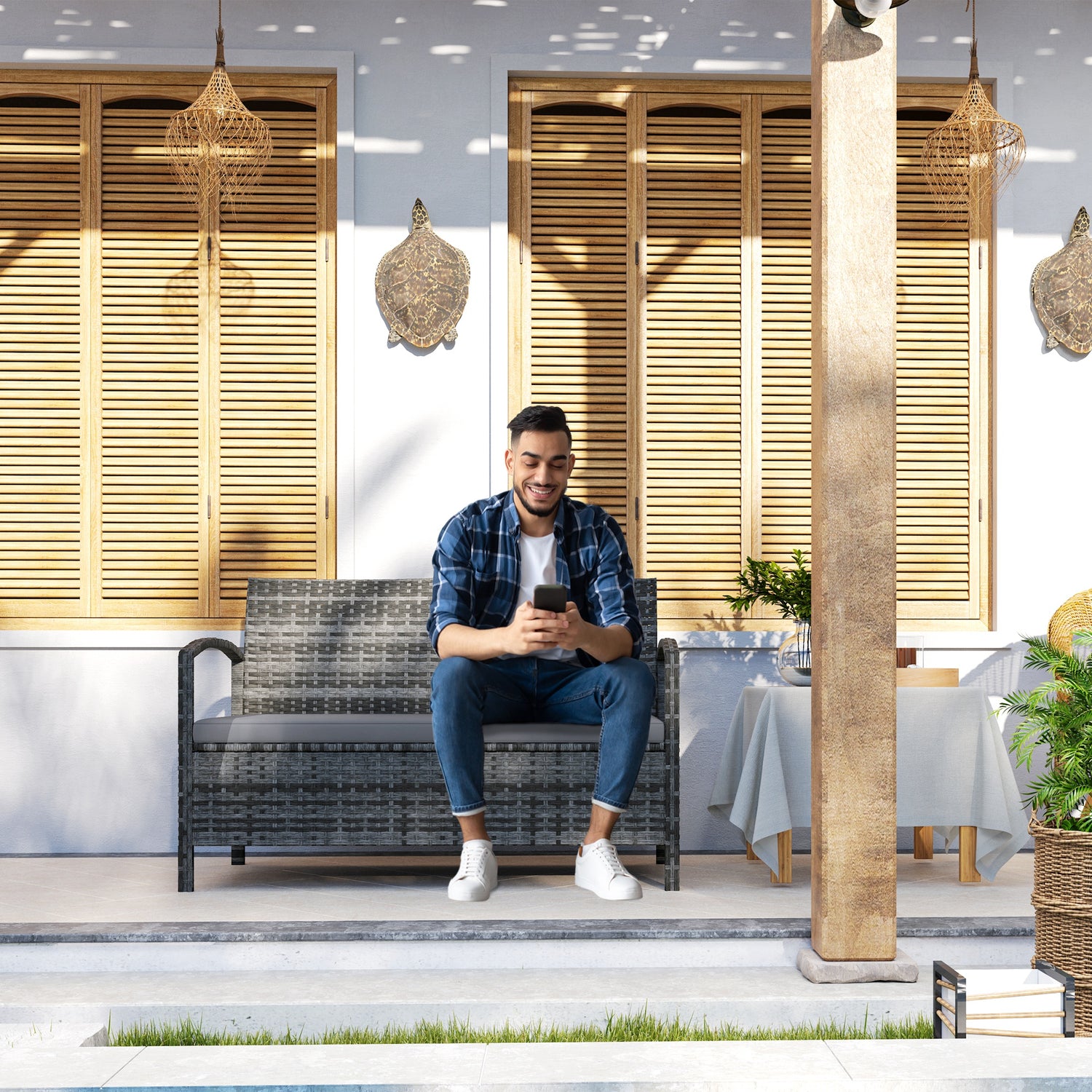 This Outsunny garden bench comes in a 2-in-1 design: a two-seater rattan bench and a garden storage box. The garden storage seat has a galvanised and powder coated, steel frame for a strong core, wrapped in stylish and tough rattan wicker. The 125L inner storage provides plenty of room to keep garden accessories stored together. Complete with a soft cushion to relax comfortably.