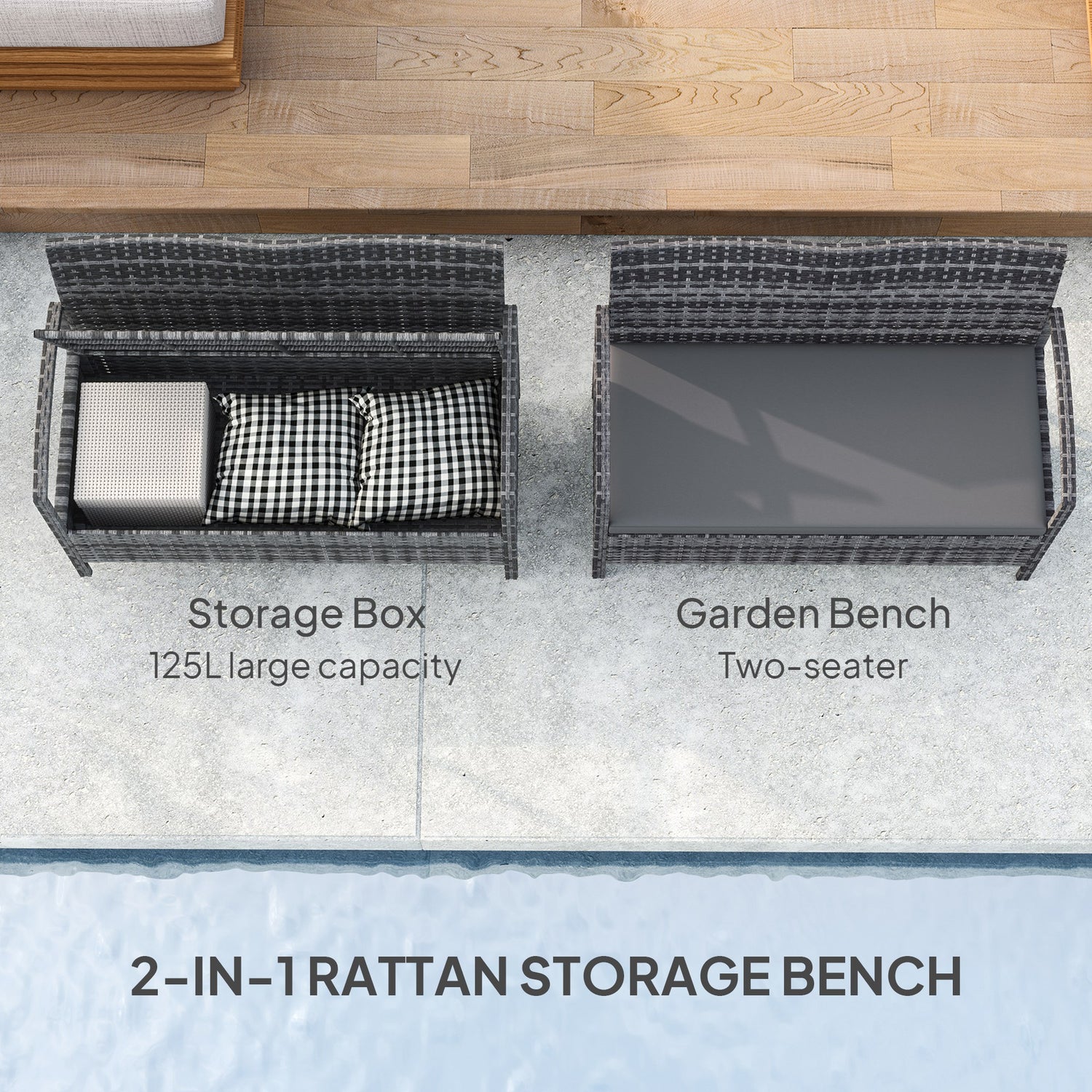 Outsunny 125L Storage Garden Bench, with Cushion - Grey