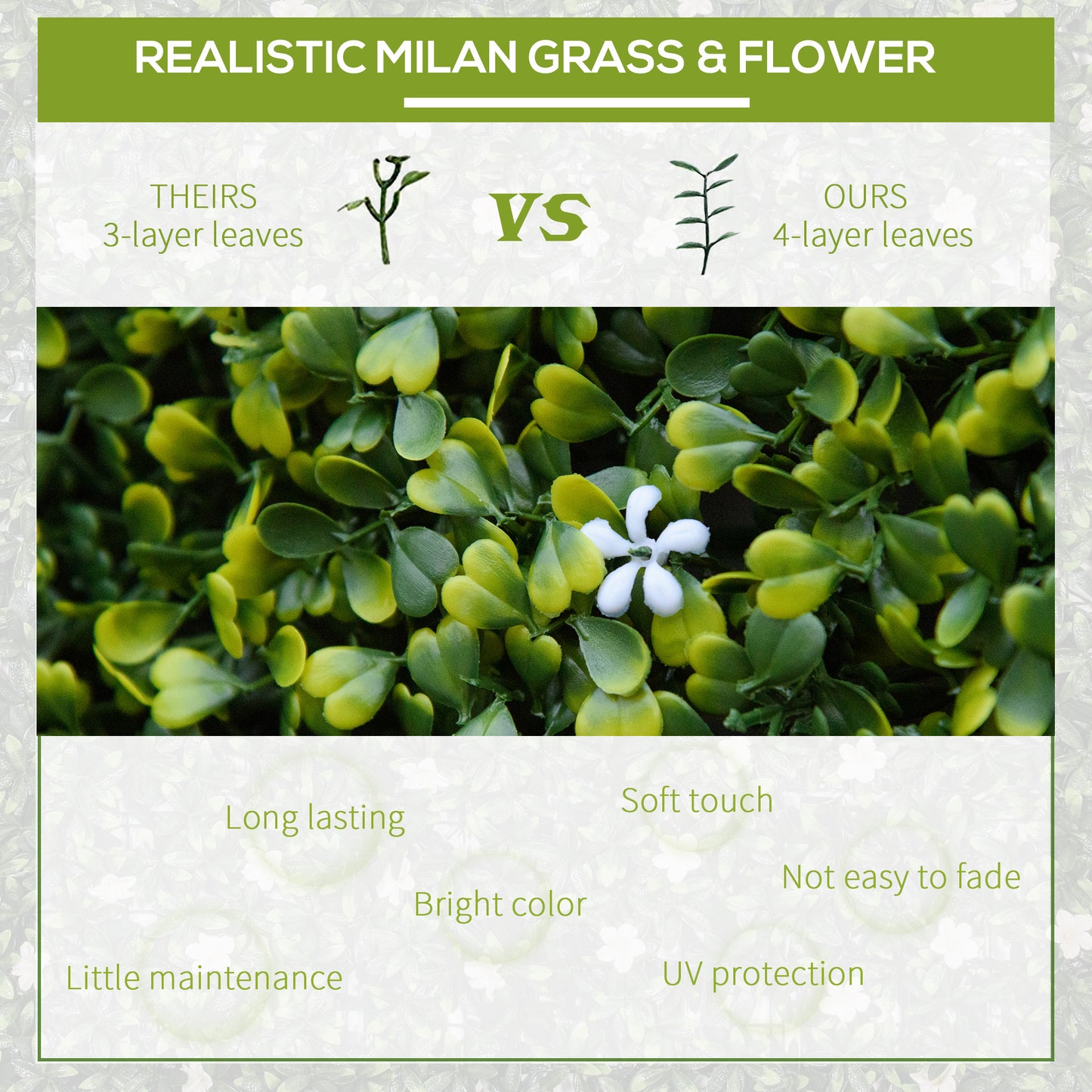 Outsunny 12PCS Artificial Boxwood Wall Panels 20" x 20" Grass Privacy Fence Screen Faux Hedge Greenery Backdrop Encrypted Milan Grass with White Flowers for Home Garden Backyard Balcony Panel