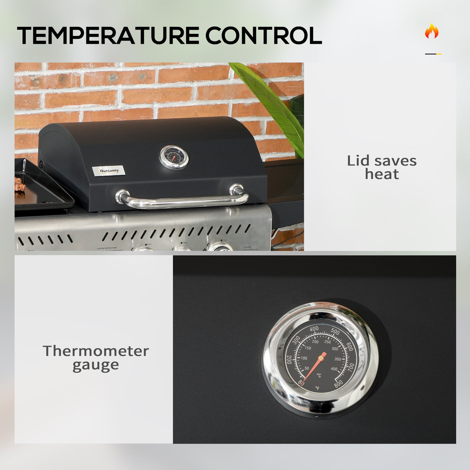 Outsunny 15 kW Gas BBQ Grill and Plancha with Side Burner, Black