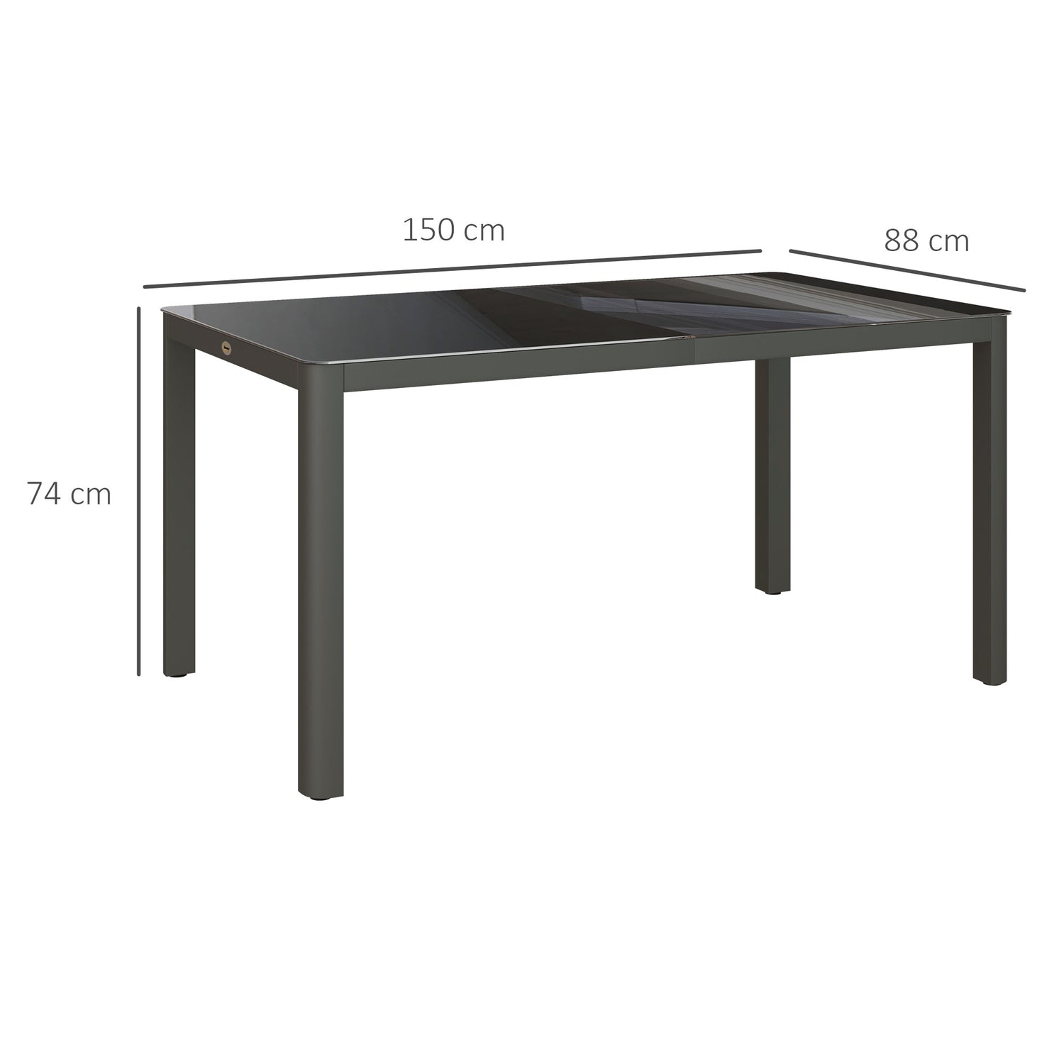 A sleek must-have for your outdoors - this Outsunny table. It's made from powder coated aluminium for a strong piece, fitted with a tempered glass table top for a sleek look. The 150cm x 88cm top gives plenty of room for you and company to gather round, with a centrepiece.