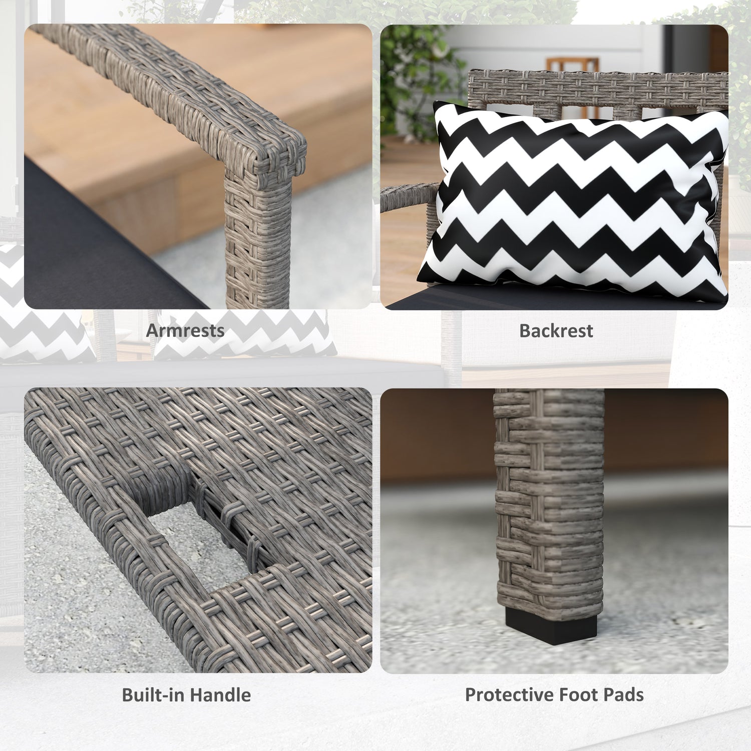 - Steel frame wrapped in UV-resistant PE rattan for outdoor use