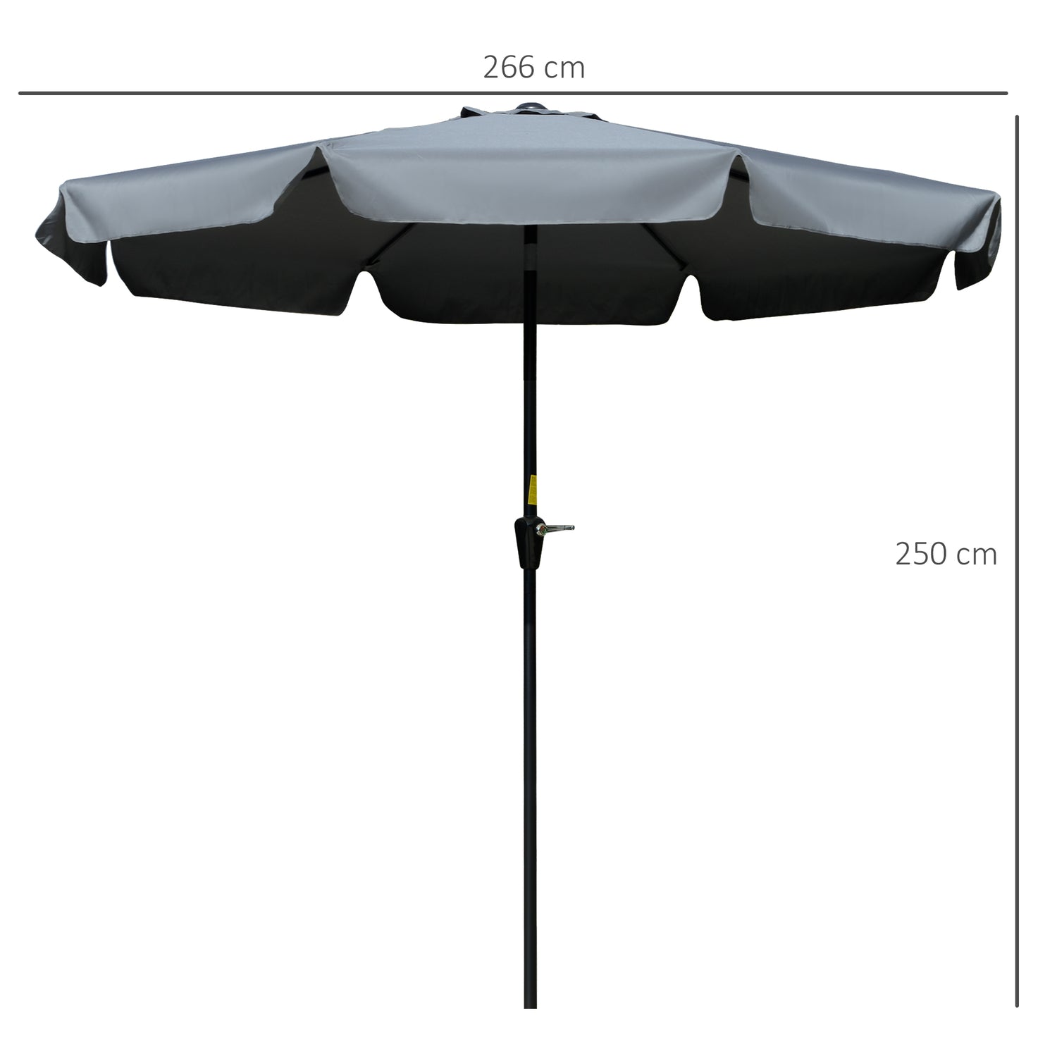 Outsunny 2.66m Patio Umbrella Garden Parasol Outdoor Sun Shade Table Umbrella with Ruffles, 8 Sturdy Ribs, Charcoal Grey