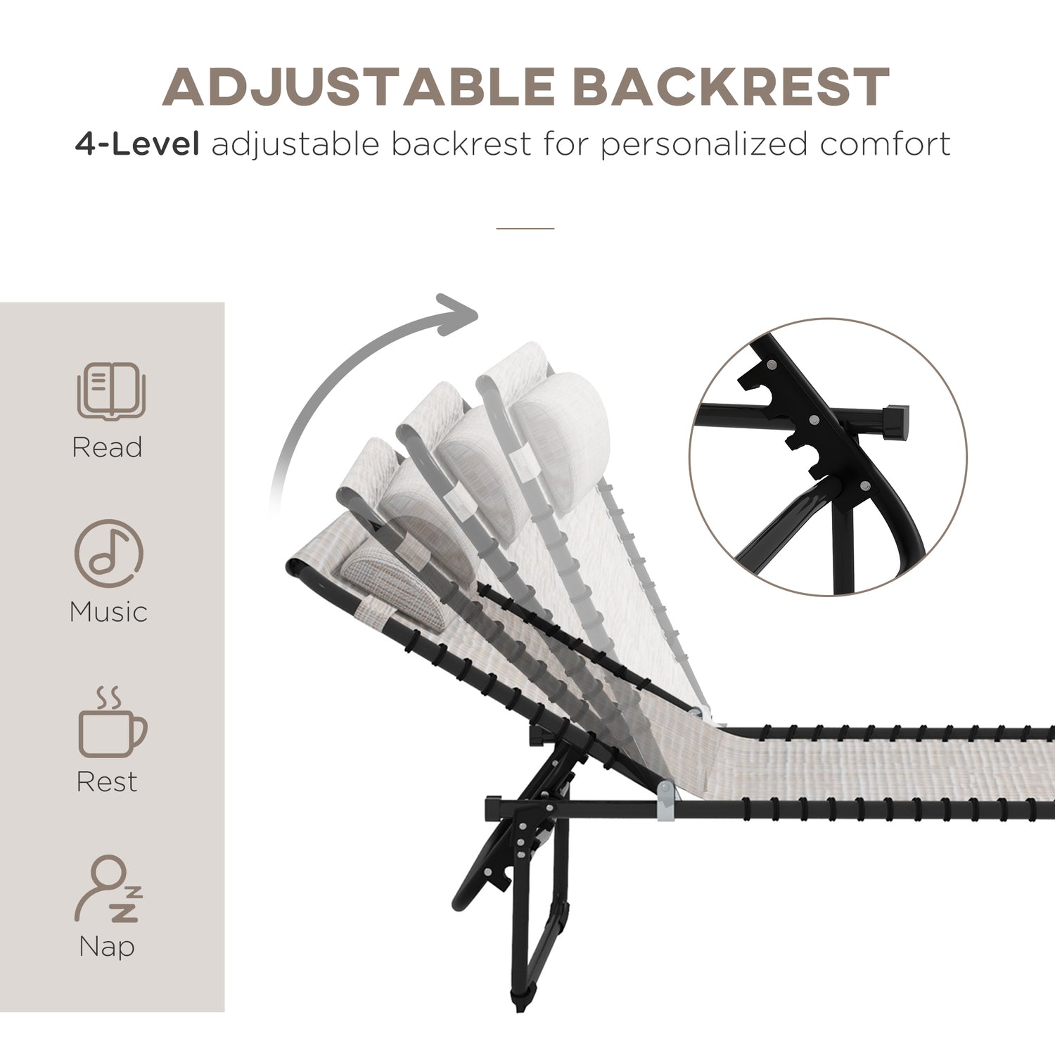 Outsunny 2 Pcs Folding Sun Lounger Beach Chaise Chair Garden Cot Camping Recliner with 4 Position Adjustable Cream White