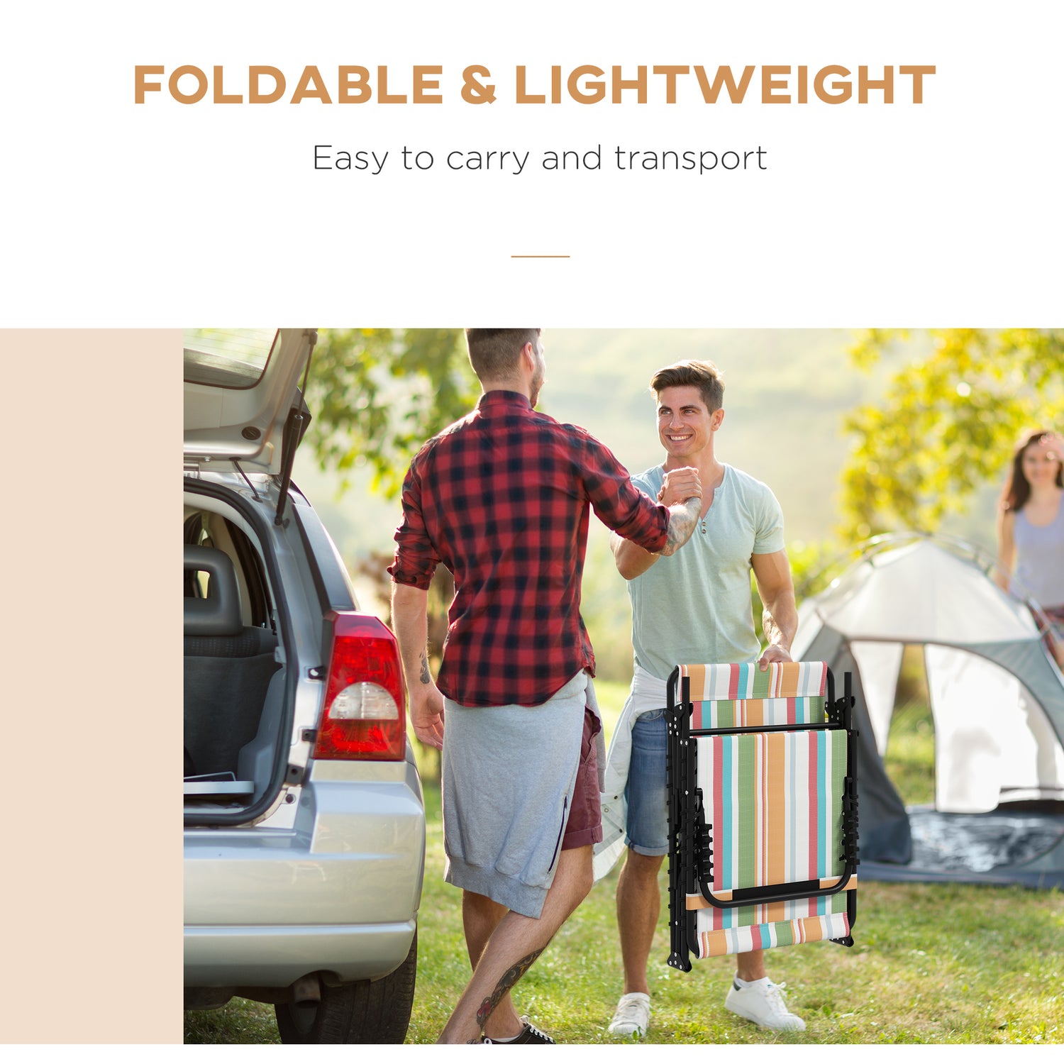 Outsunny 2 Pcs Folding Sun Lounger Beach Chaise Chair Garden Cot Camping Recliner with 4 Position Adjustable Multicolored