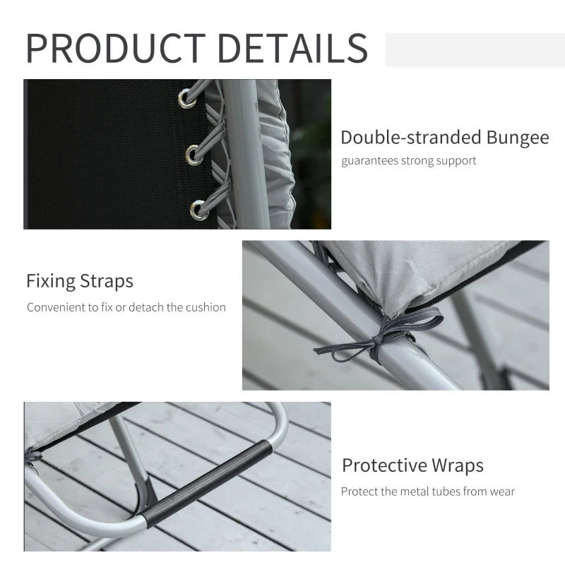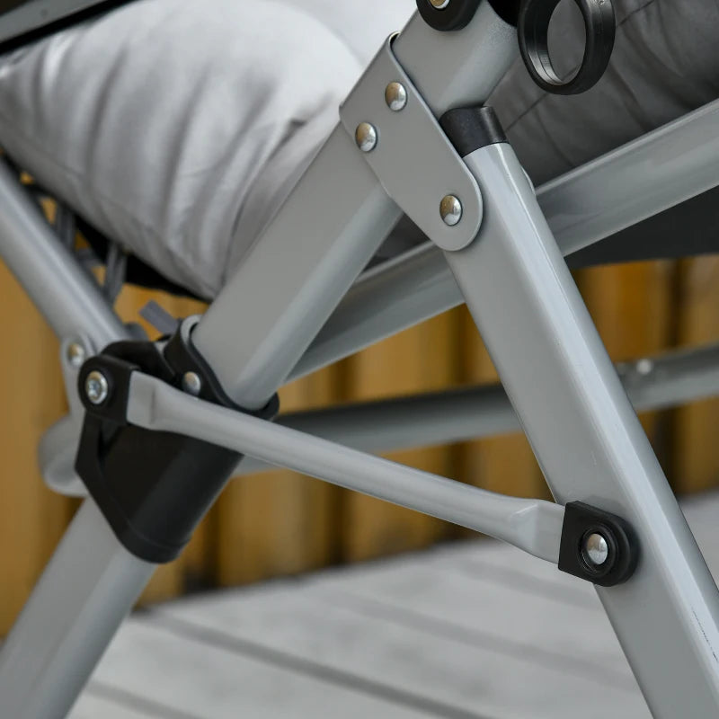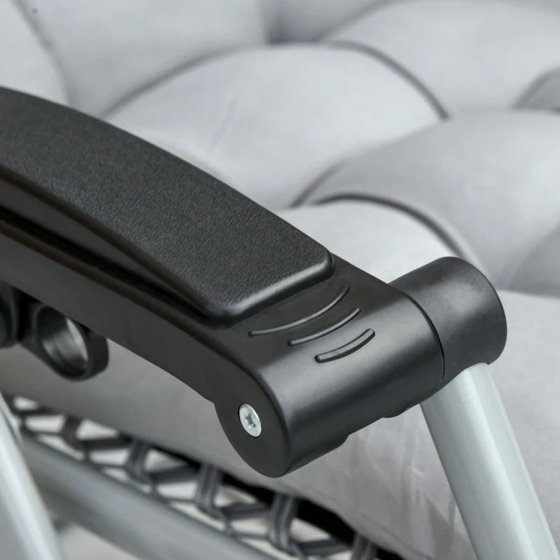 Outsunny 2 Piece Reclining Zero Gravity Chair Metal Frame Folding Garden Sun Lounger with Cushion Headrest Light Grey
