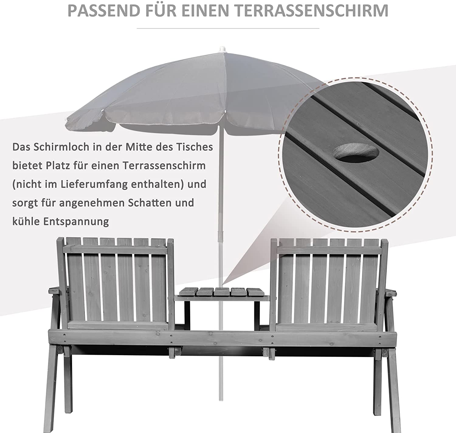 - TABLE WITH PARASOL HOLE: 5cm diameter of the park bench to hold Outsunny garden umbrellas - creating safe shelter, whilst giving you a handy holding spot.