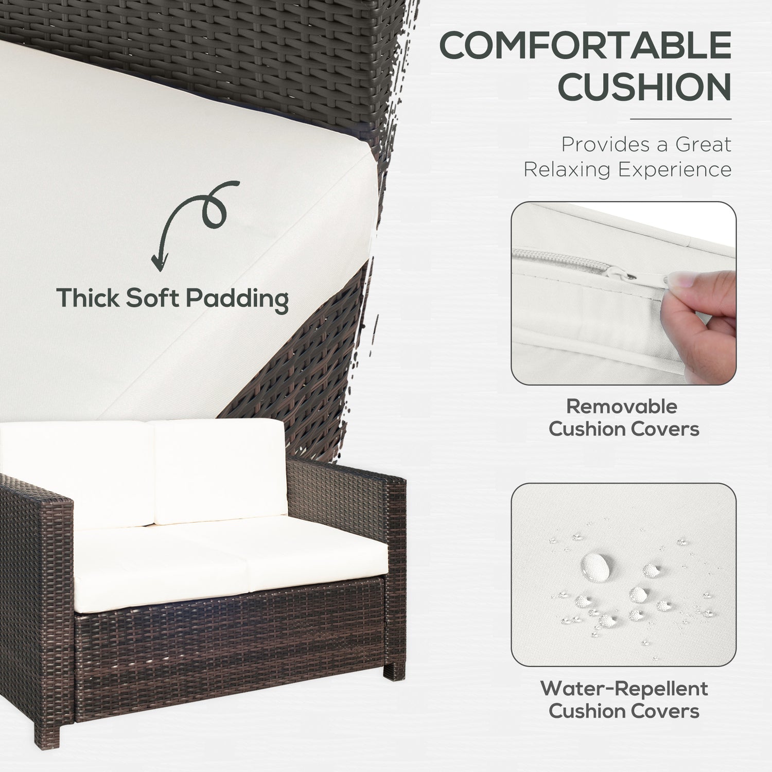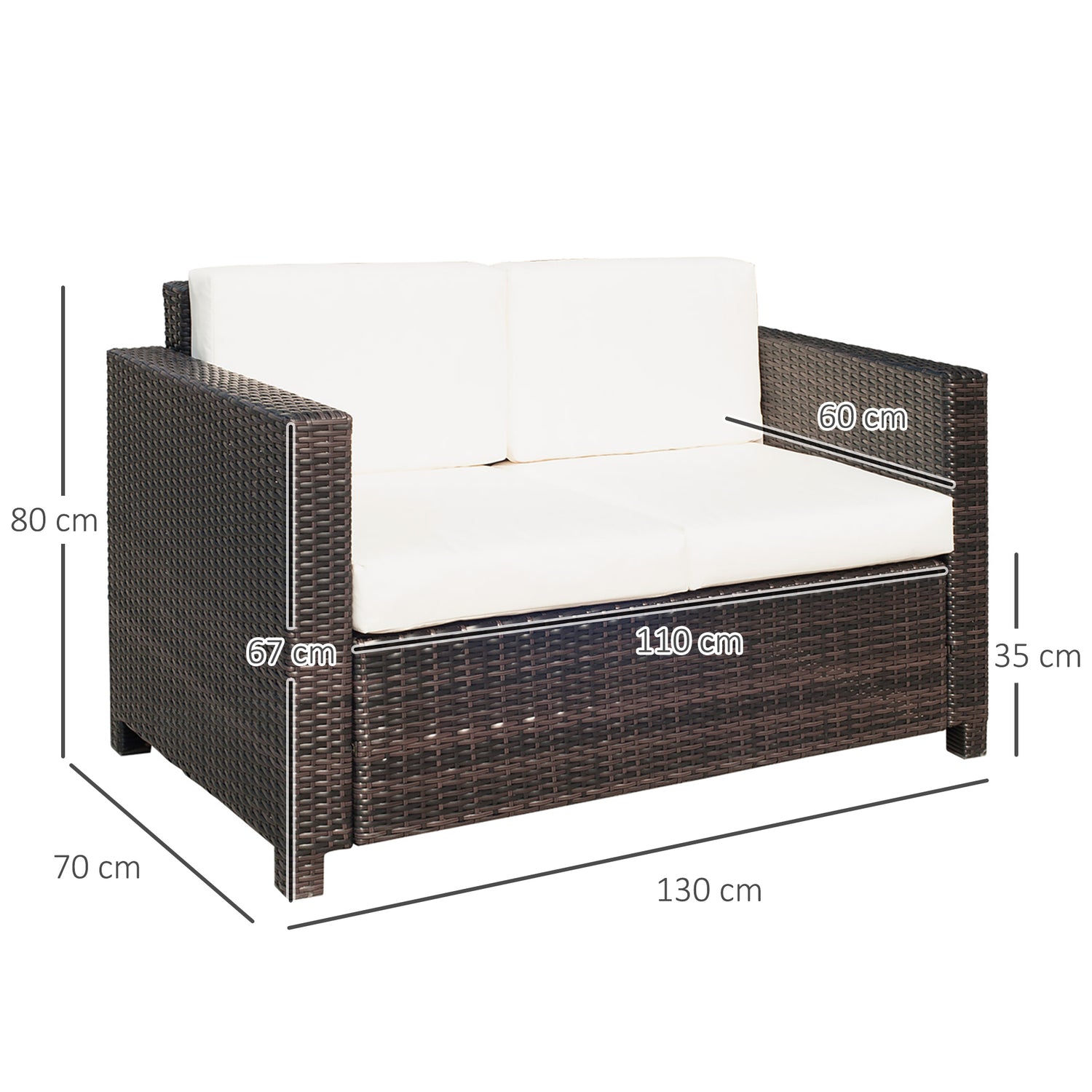 Outsunny 2 Seater Garden Furniture, Rattan Sofa with Soft Padded Cushion and Armrests, Wicker Garden Loveseat for Patio, Mixed Brown