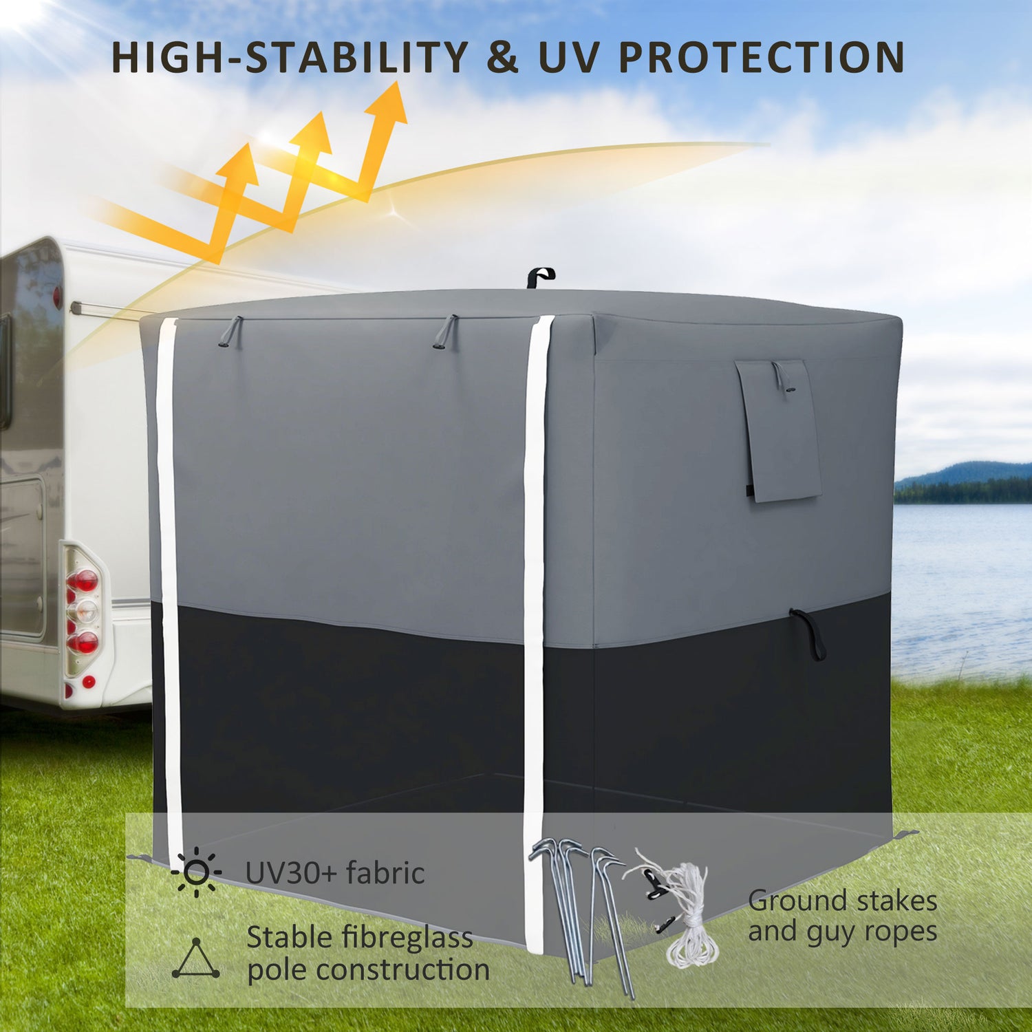- Dimensions: 200H x 180L x 180Wcm. Eave: 178Hcm. Fits 2-3 people.