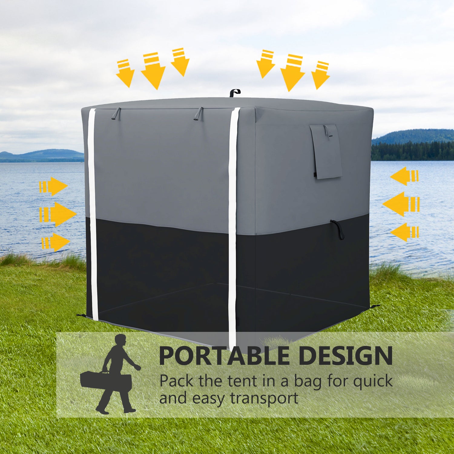 A handy garden shelter for your outdoor gatherings, assembled oh so quickly - bring this Outsunny pop up gazebo with sides to your garden this season and beyond. Our garden tent comes with two mesh windows to bring light and fresh air inside. Outer covers offer privacy whenever. The fibreglass pole frame means a strong core. Bag included to store and carry easily. Outdoor entertaining made easy.