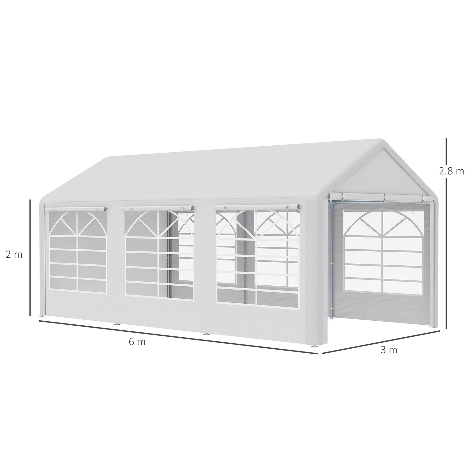 - DIMENSIONS: 600L x 300W x 280Hcm. Eaves: 200Hcm. Single room: 300L x 200Wcm. Note: We advise customers never to leave it up overnight or in bad weather. This requires 4-6 people to assemble. Measure your site before buying.