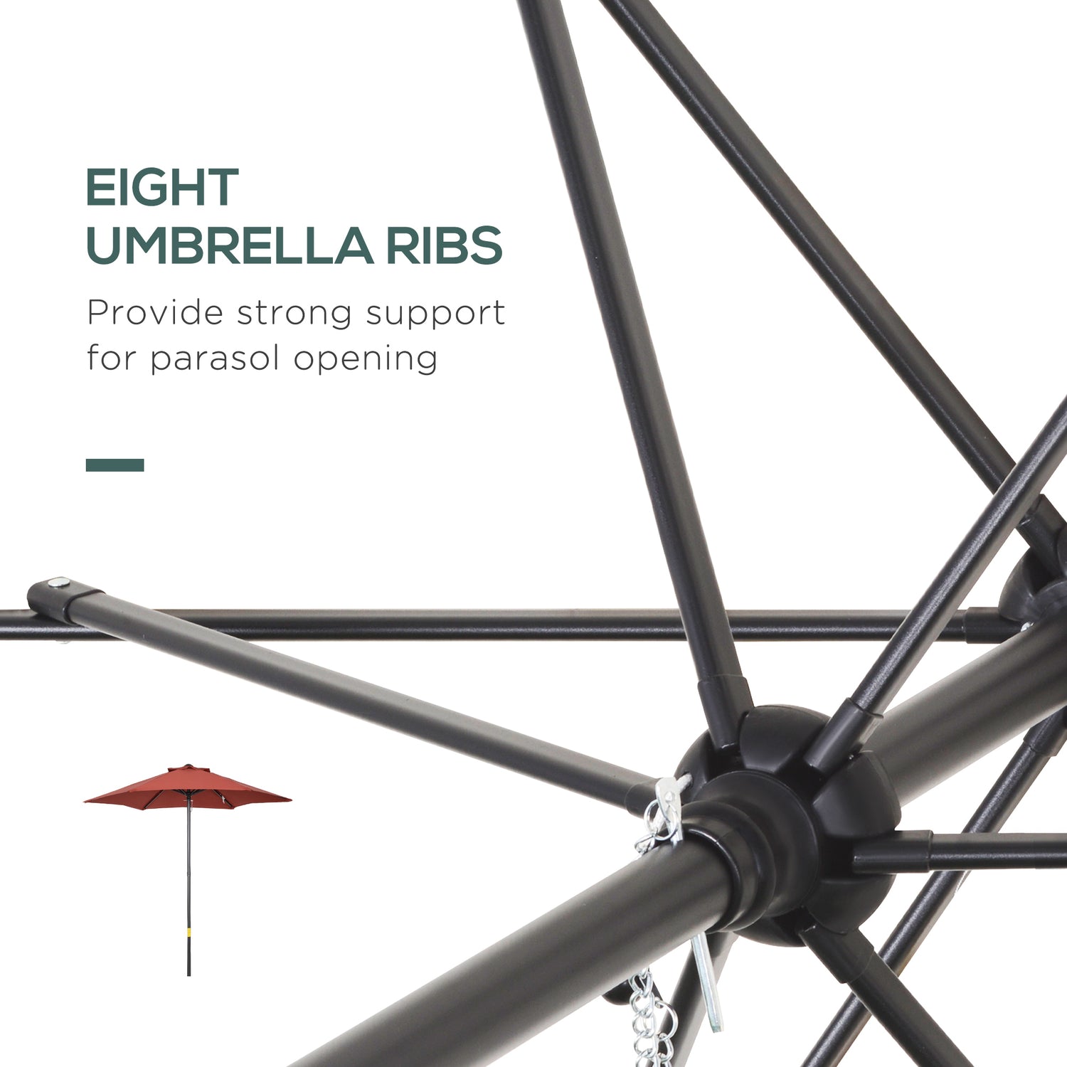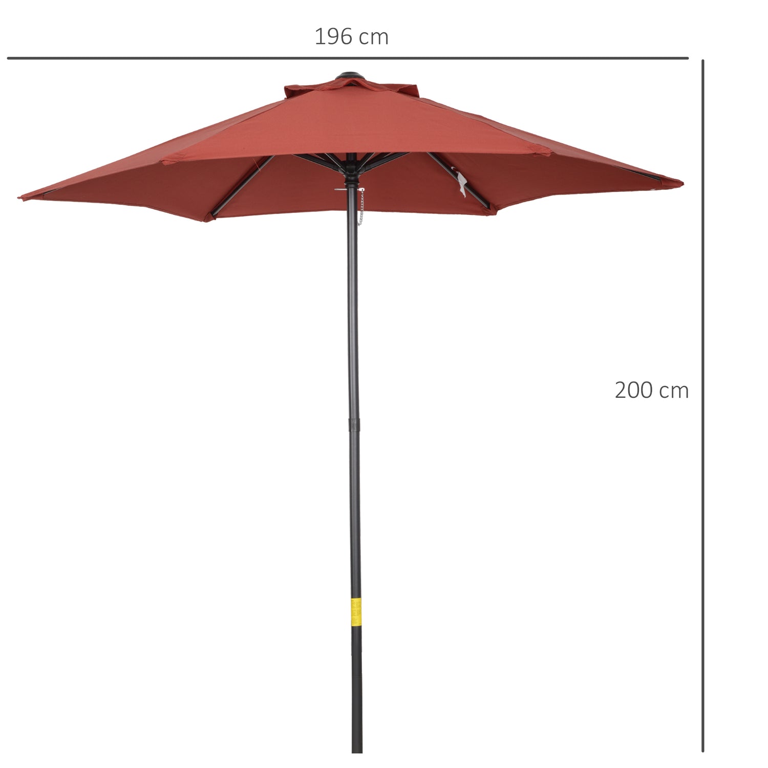 Outsunny 2m Parasol Patio Umbrella, Outdoor Sun Shade with 6 Sturdy Ribs for Balcony, Bench, Garden, Wine Red