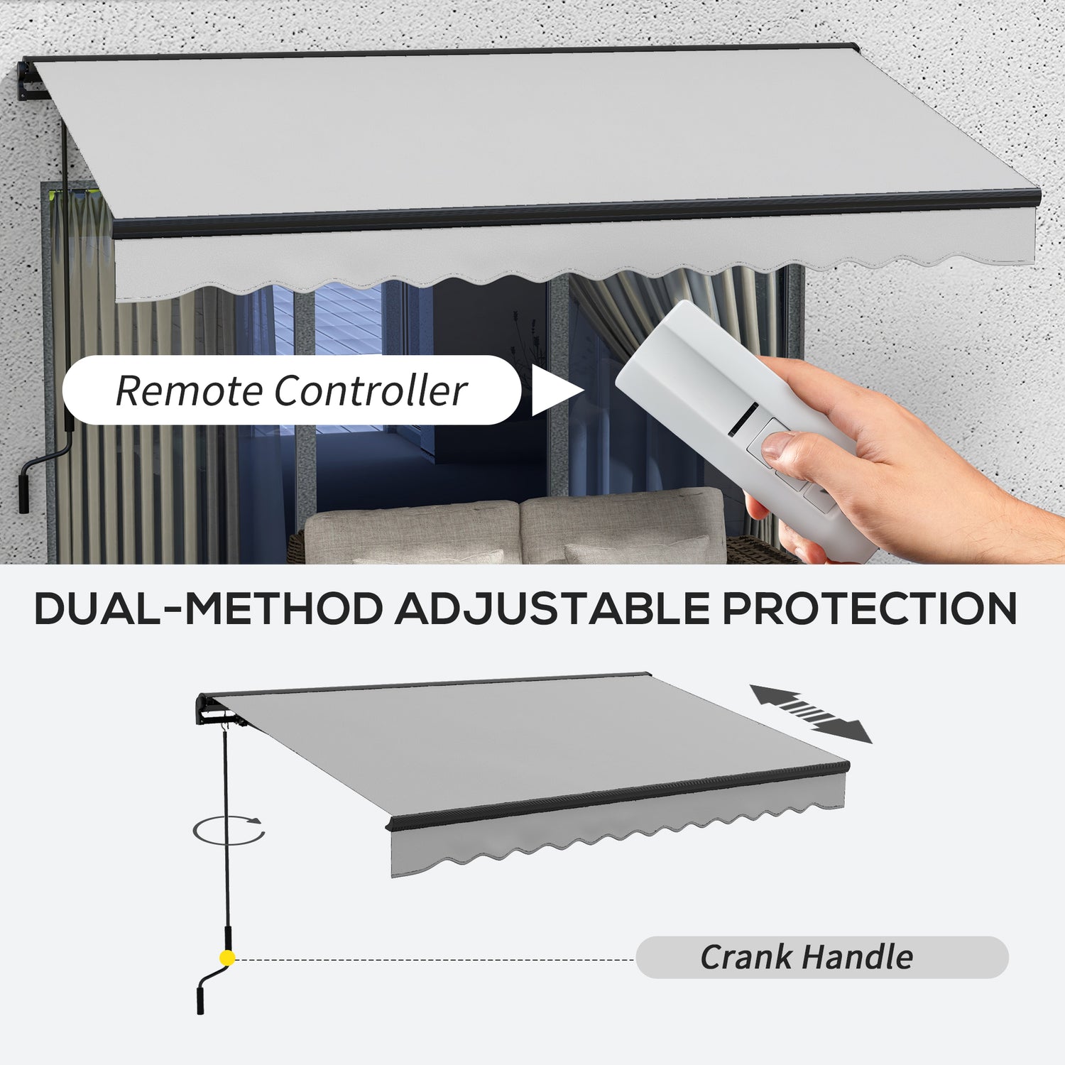 Outsunny 3.5 x 2.5m Aluminium Frame Electric Awning, Retractable Awning Sun Canopies for Patio Door Window, Light Grey
