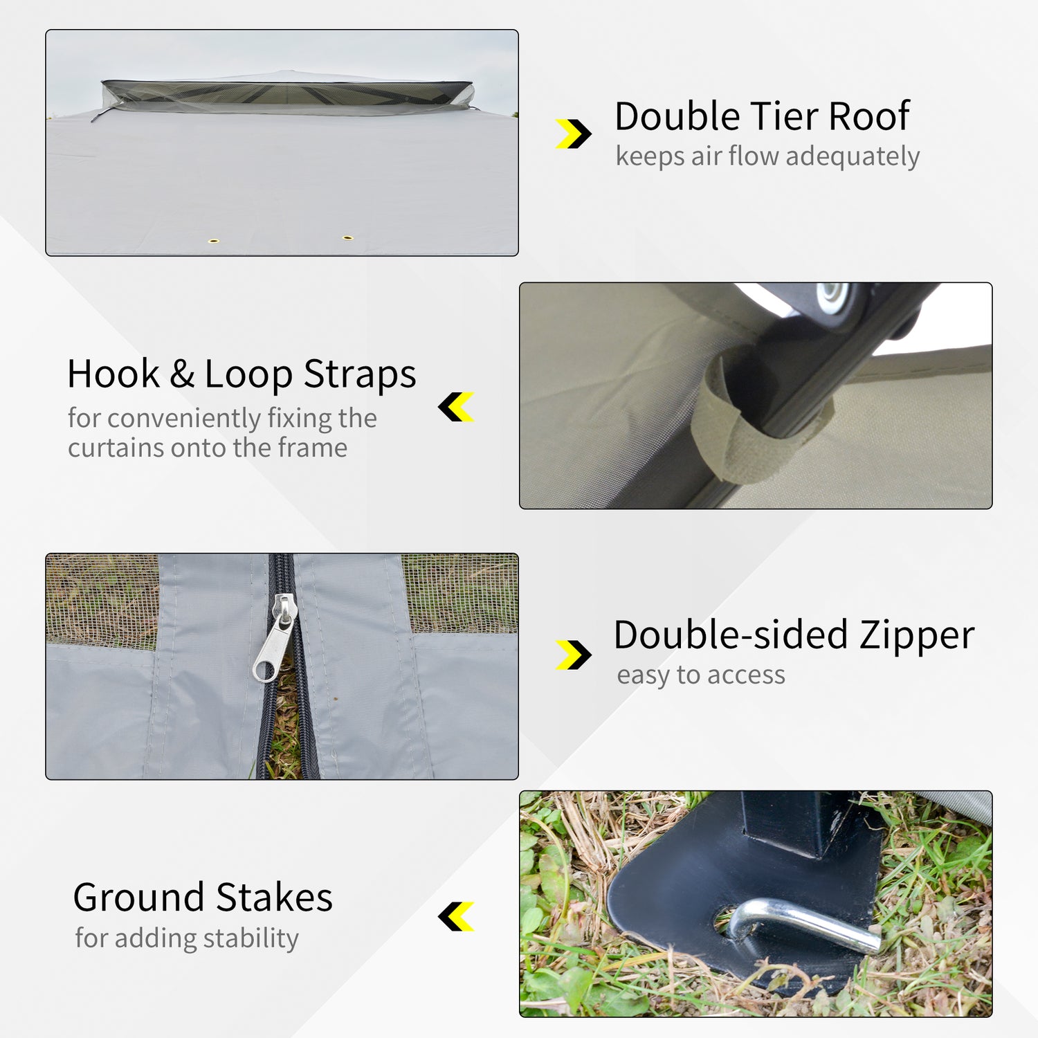 - Canopy & curtains: The double top provides a large degree of protection against UV 50+. Air vents in the outdoor gazebo top provide ventilation and heat dissipation. With 4 removable zipped mesh sidewalls, ensure good ventilation
