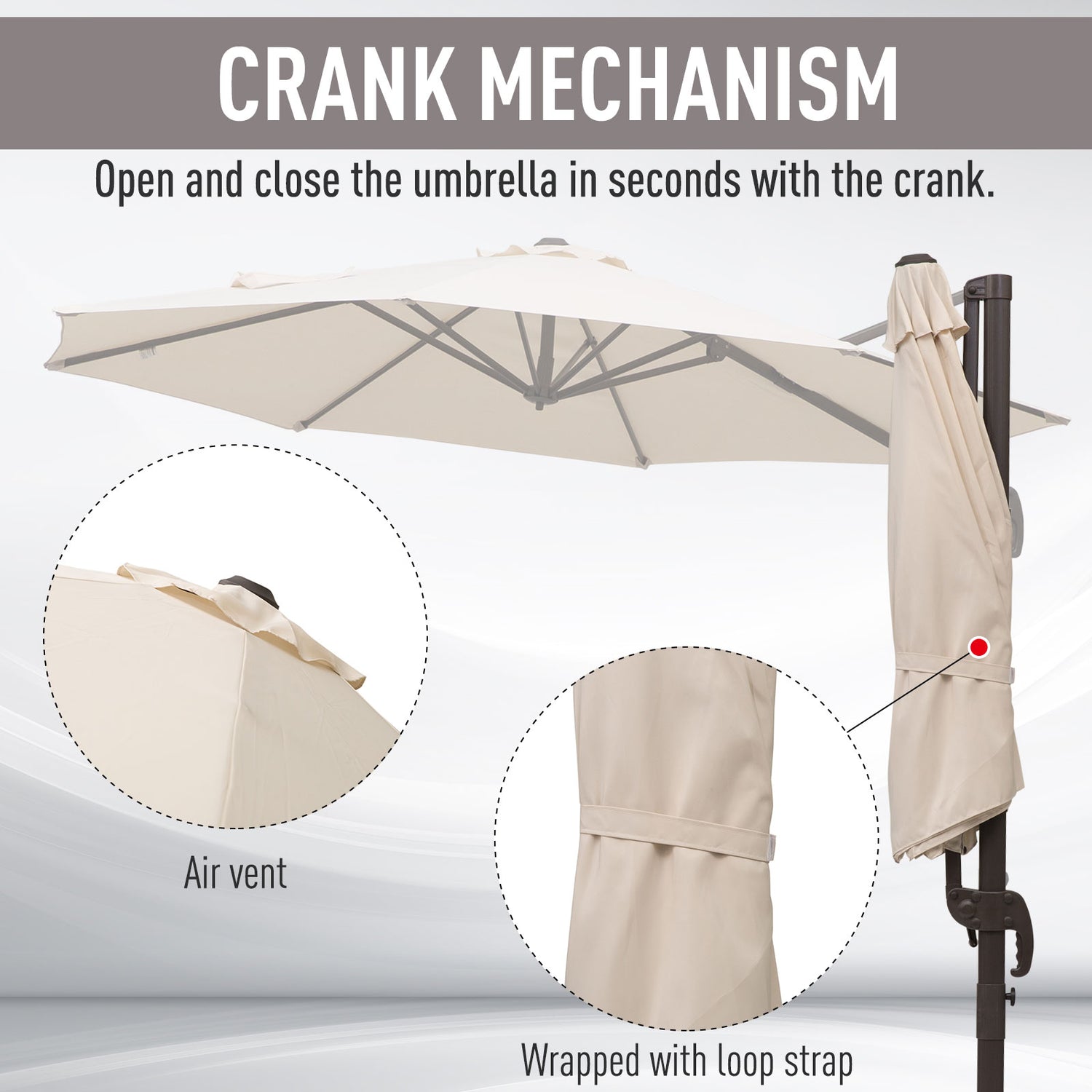 Outsunny 3 m Beach Hanging Umbrella Parasol W/Hand Crank-Khaki
