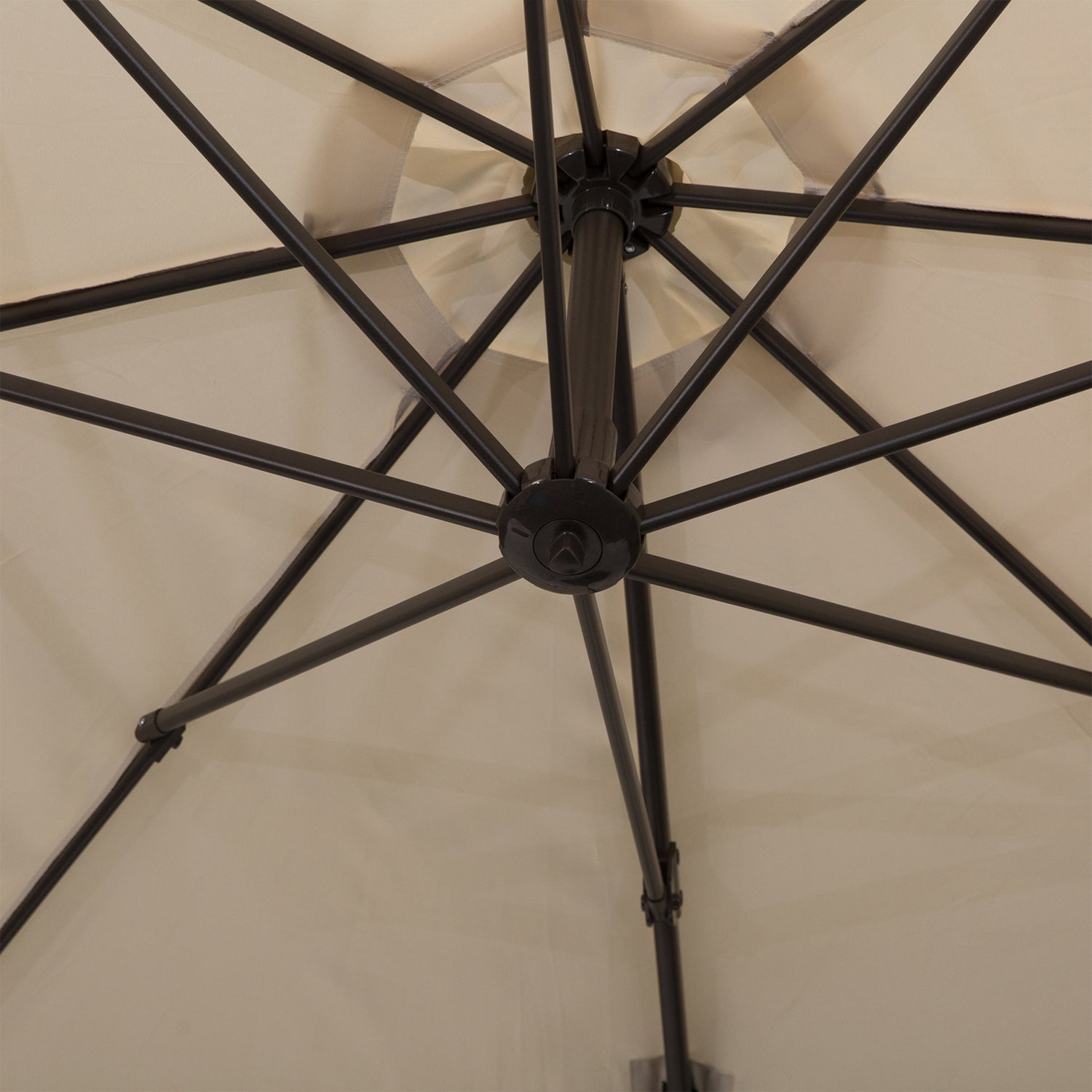 - WEATHER-RESISTANT CANOPY: Made from 180g polyester, the cantilever patio parasol protects you from UV, glaring sun and mild rain and wind, keeping you protected all day long.