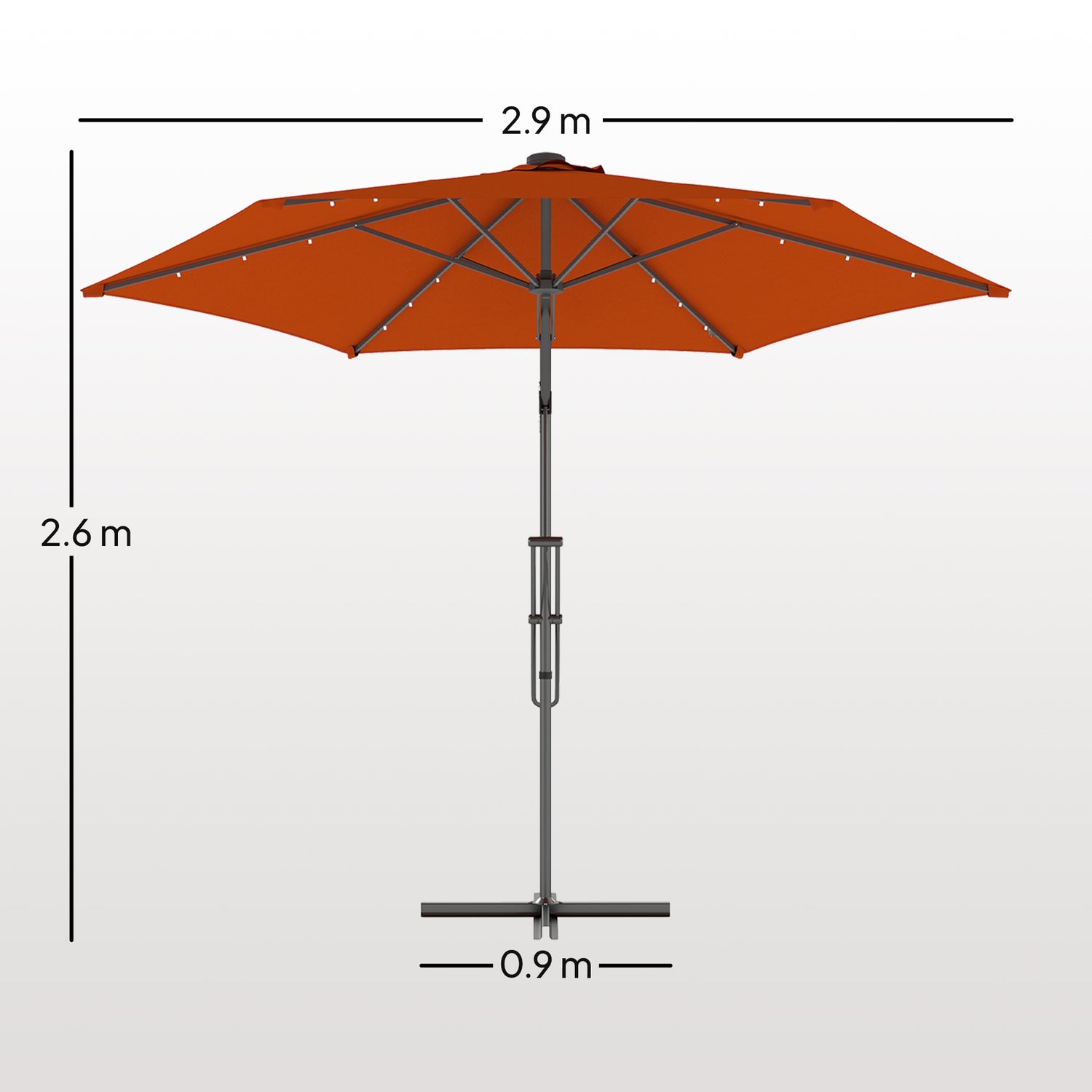 Outsunny 3(m) Garden Parasol Cantilever Umbrella with Solar LED - Orange